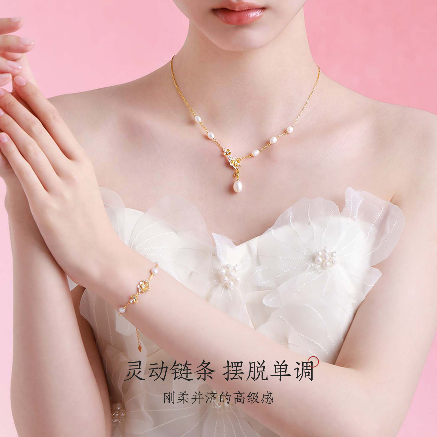 周大生茉莉花珍珠手链女生纯银S925轻奢珐琅手饰生日礼物送女友