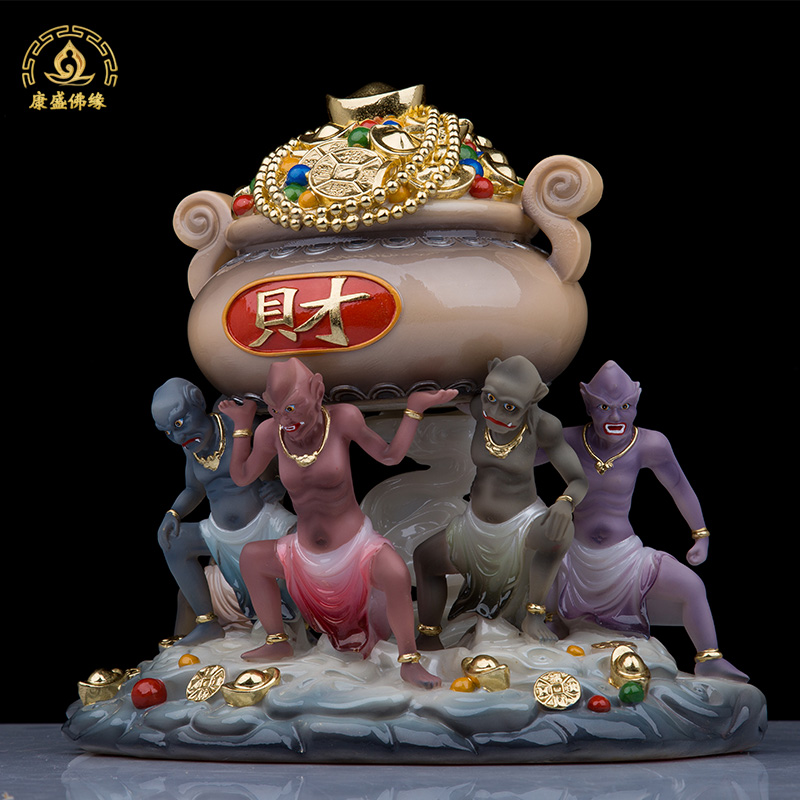 汉白玉五鬼神像居家客厅装饰品五路财神五小鬼五灵公手工艺品摆件