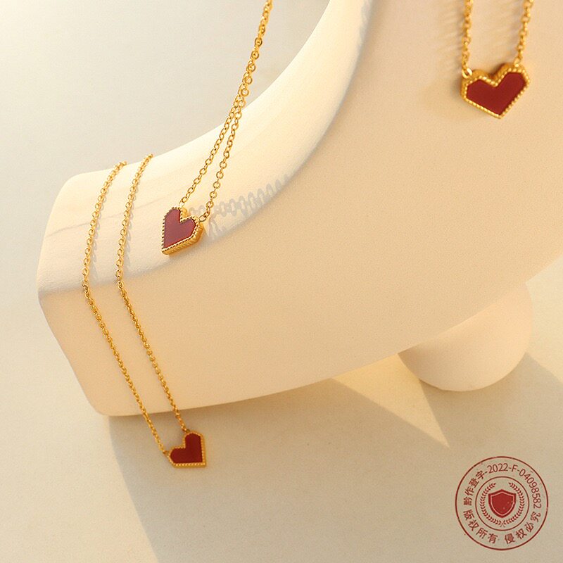 法式ins轻奢风爱心锁骨链钛钢项链镀18k金复古桃心百搭配饰女饰品