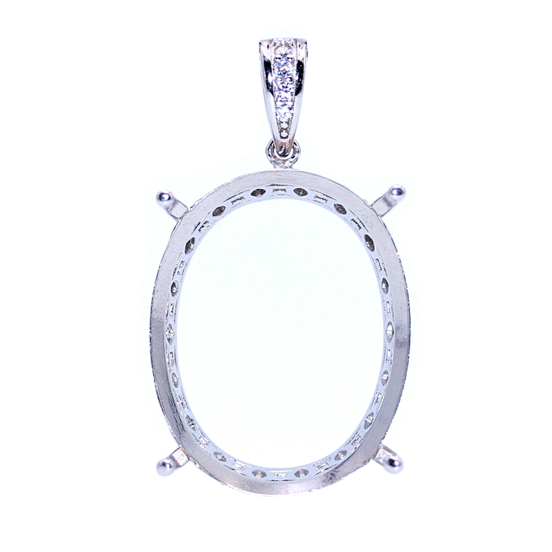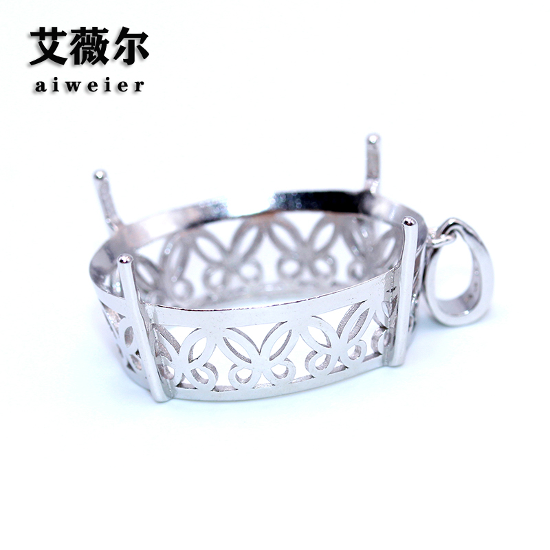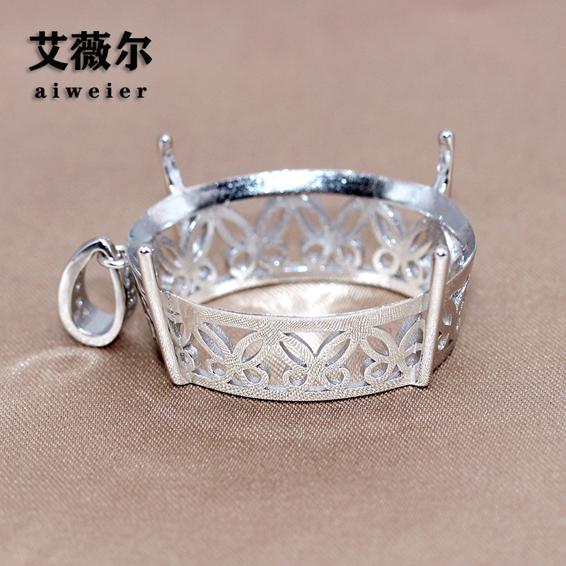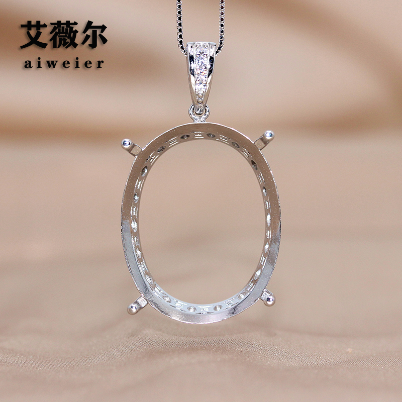 S925纯银吊坠空托简约简单四爪代工宝石定制镶嵌18k金大尺寸