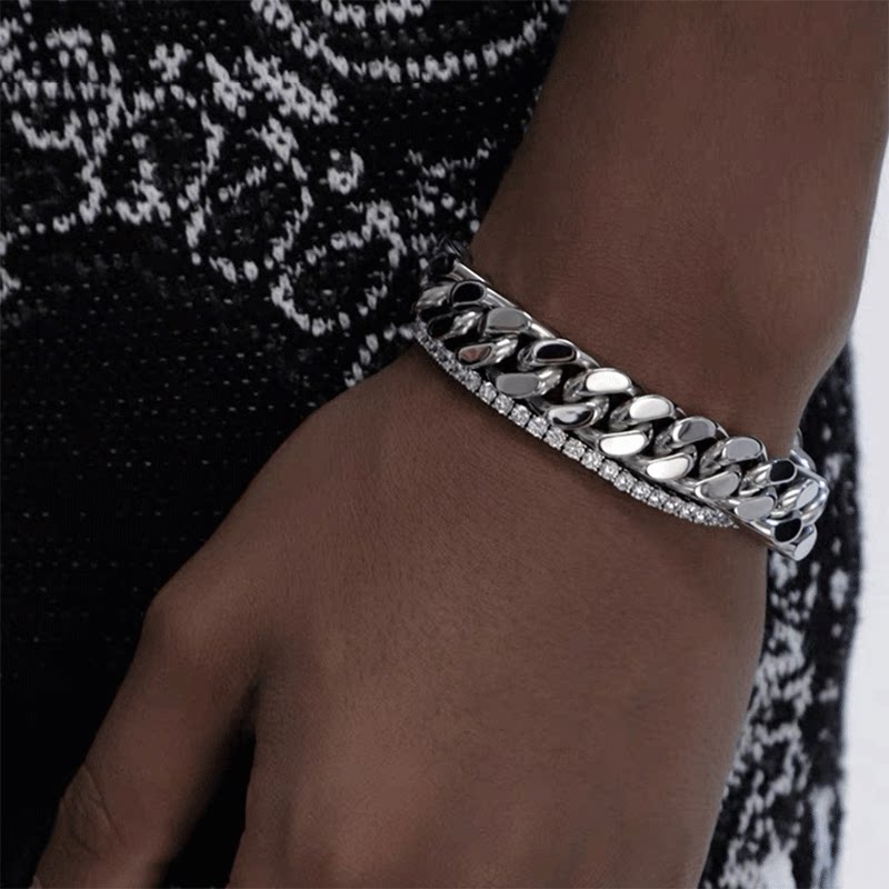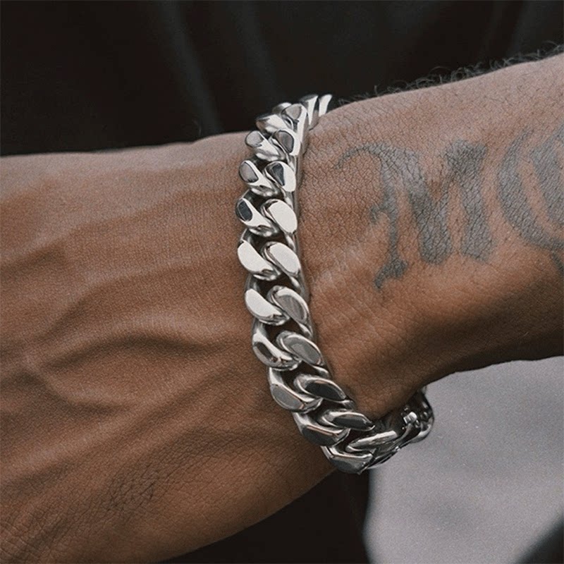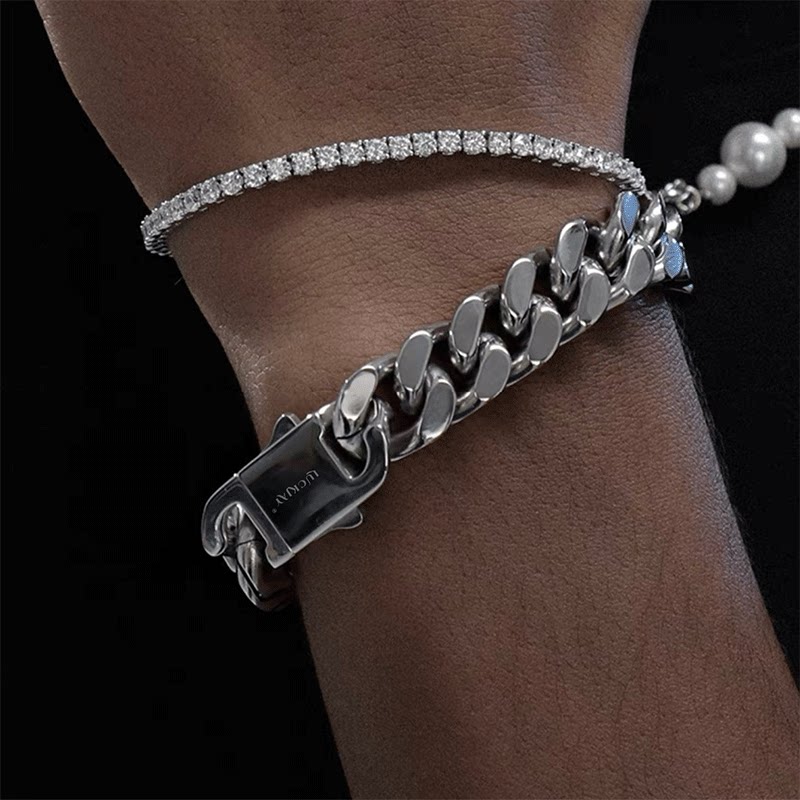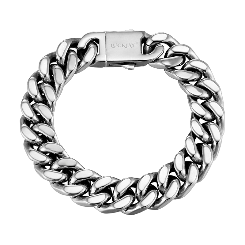 LUCKJAY 立体钛钢银色古巴手链男 欧美流行嘻哈古巴链 cuban link