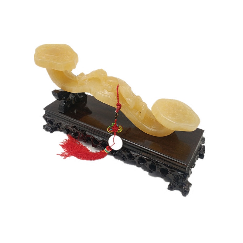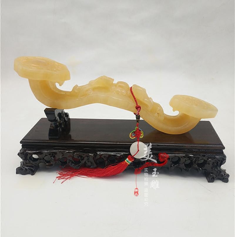 天然黄玉如意摆件 客厅办公室玉如意客厅玄关工艺品乔迁礼品包邮