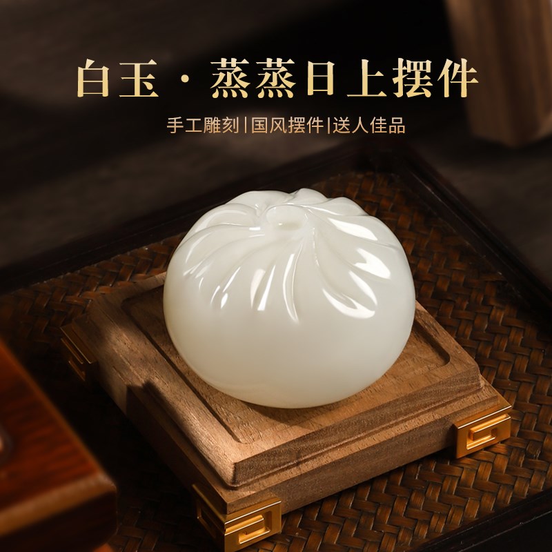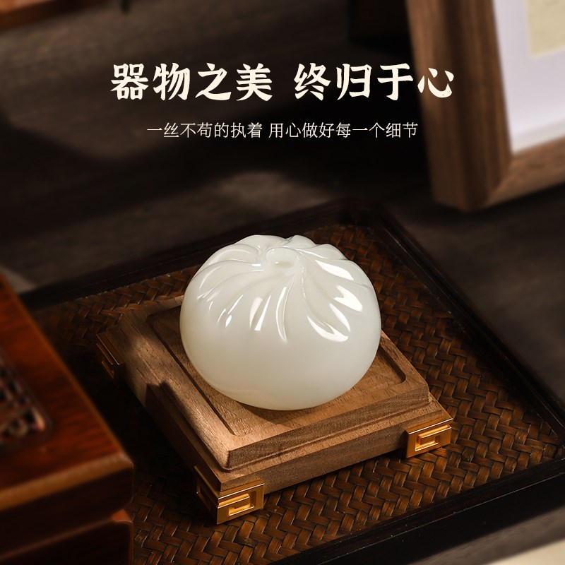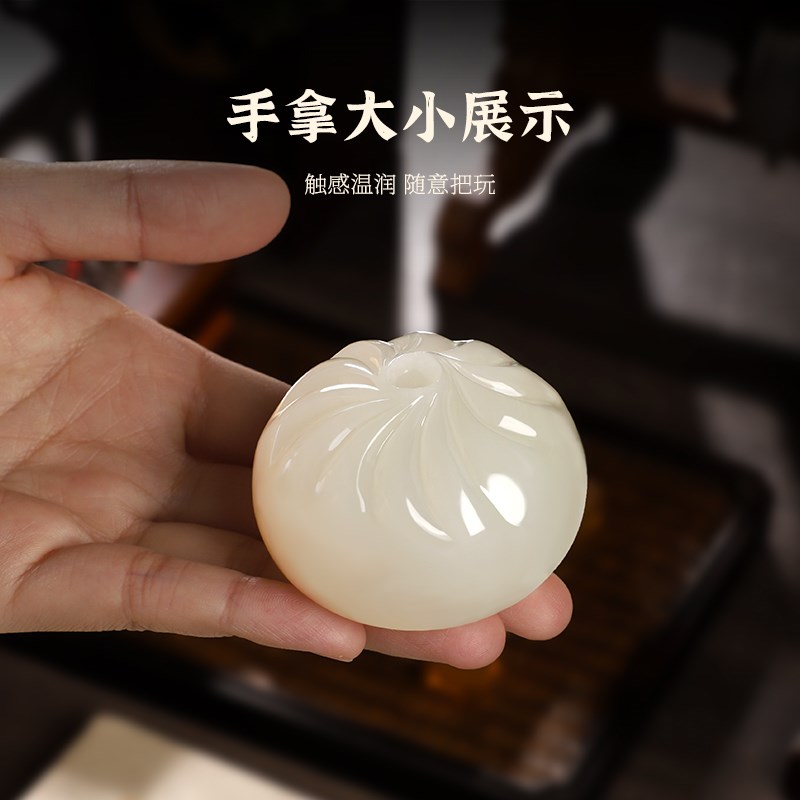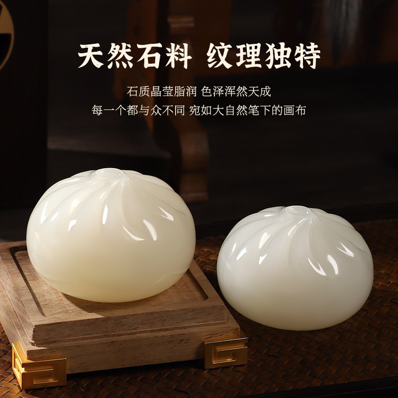 小笼包创意摆件白玉可爱茶宠蒸蒸日上包子客厅家居装饰品书房镇纸