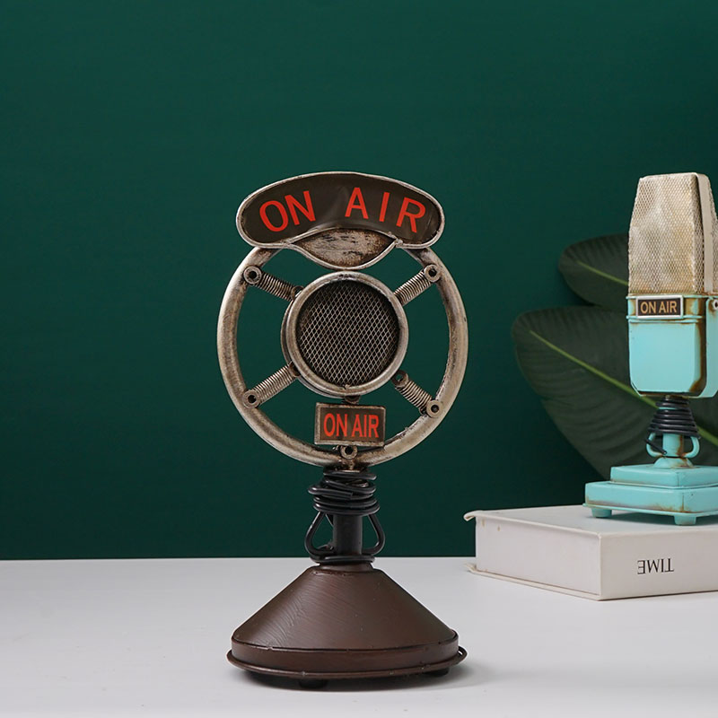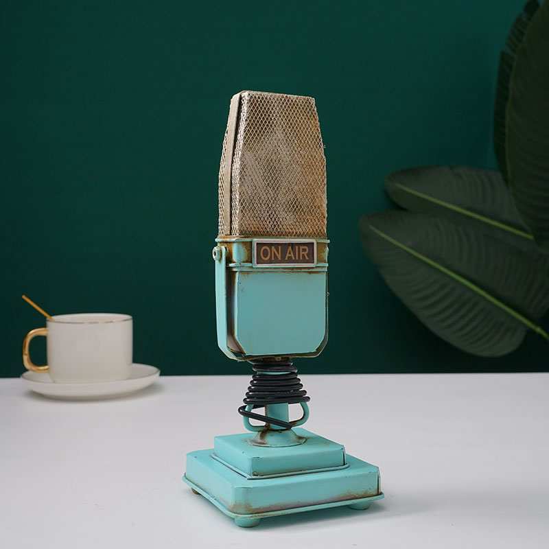 速发复古麦克风模型道具老式铁艺怀旧古风拍照摆件民物旧国品软装