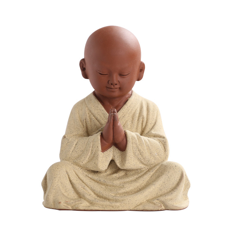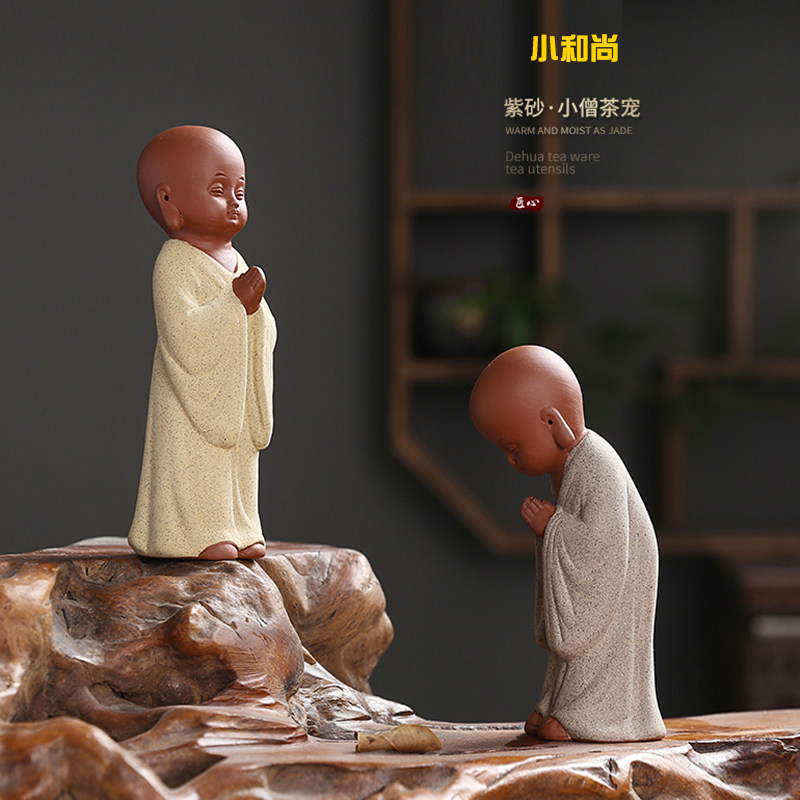 紫砂小和尚禅意复古家居中式摆件客厅玄关茶室鱼缸盆景陶瓷装饰品