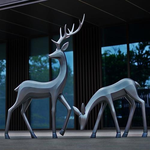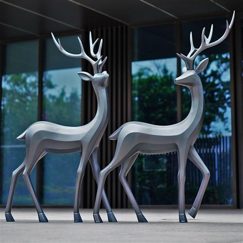 鹿雕塑摆件线条块面玻璃钢梅花鹿户外庭院园林景观小品橱窗装饰