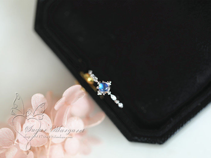 瓦尔登湖日系轻奢ins时尚月光石925纯银镀金女戒指指环 精致简约