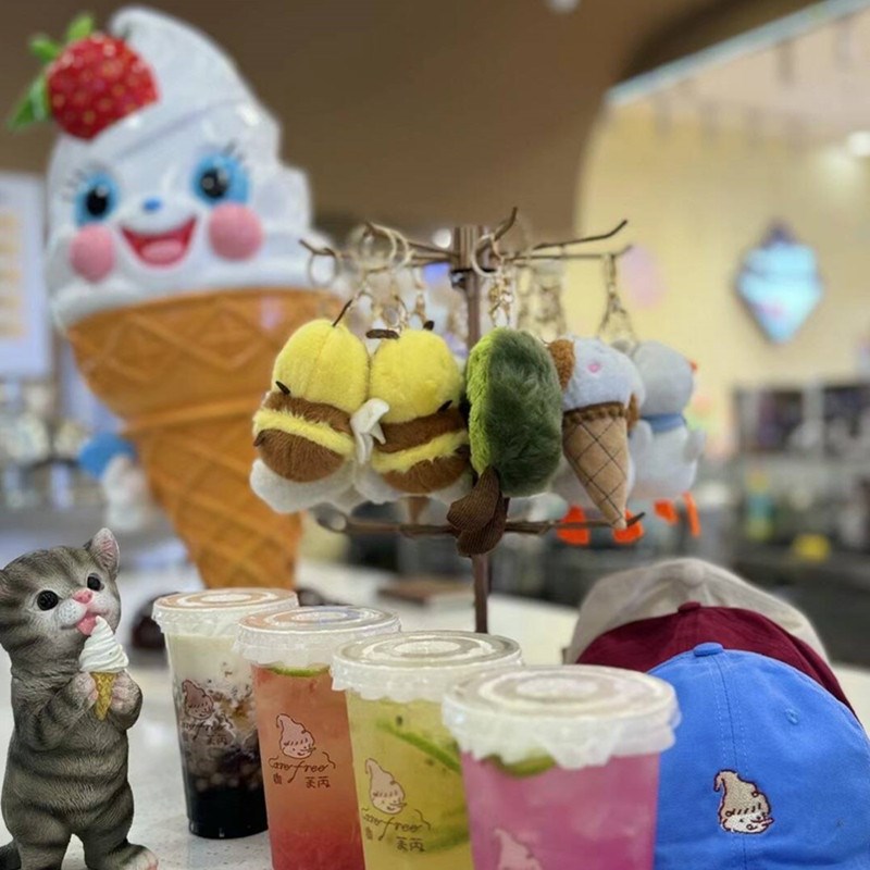多巴胺雪糕甜品店门口引流冰淇淋雕塑摆件发光招手欢迎冰激凌模型