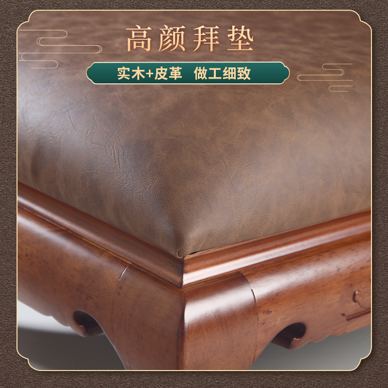 高端四脚实木皮拜垫跪垫家用磕大头加厚磕头佛前拜垫方形寺庙佛堂