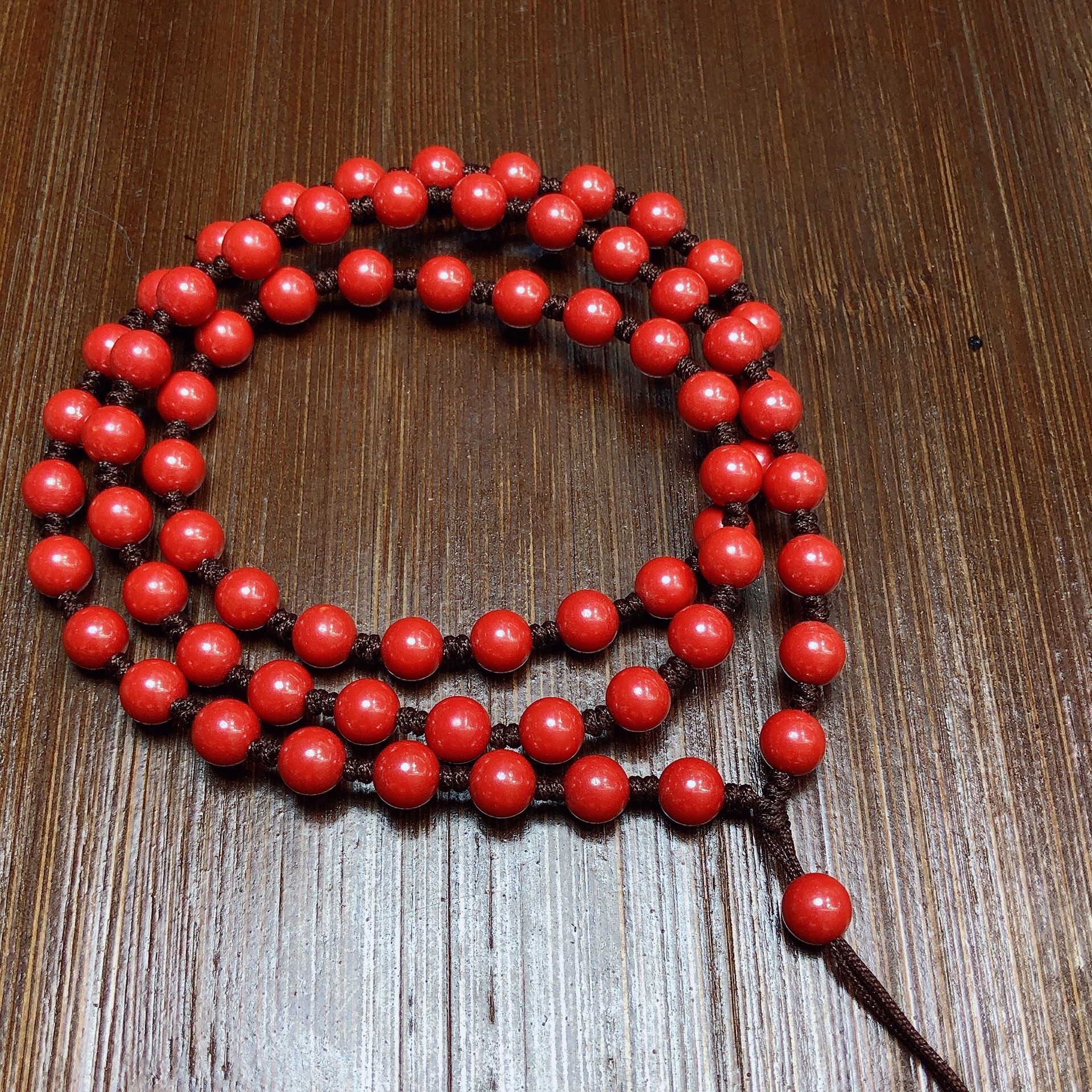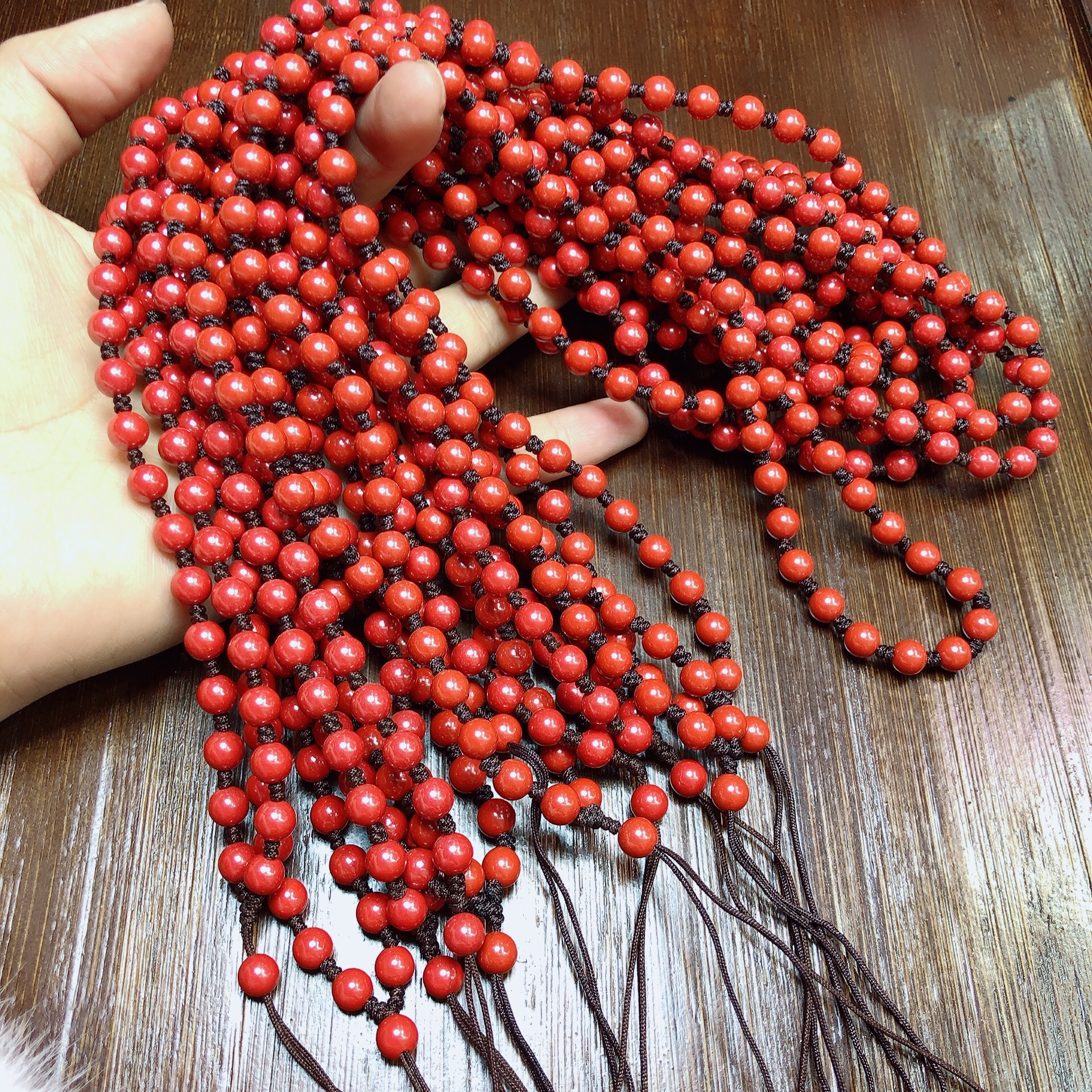泓石斋 朱砂吊坠链圆珠帝王红砂本命年百搭链子流行红色毛衣链6mm