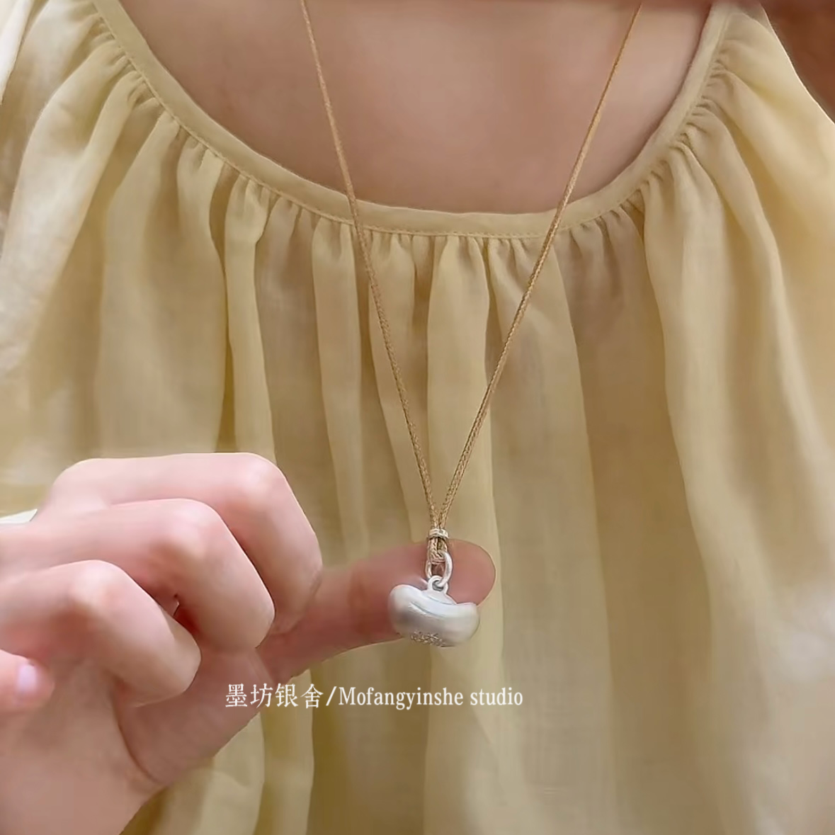 足银999.9银元宝吊坠实心福袋小银坨古法招财纳福百搭毛衣链礼物
