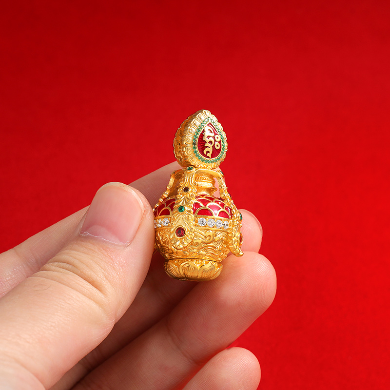 S925纯银镀金长寿宝瓶吊坠藏式迷你纯银嘎乌盒空心可打开项链吊坠