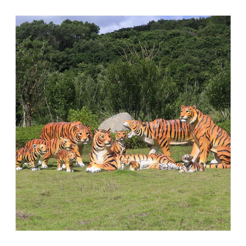 户外园林仿真老虎雕塑玻璃钢白虎摆件公园景区动物园模型景观装饰