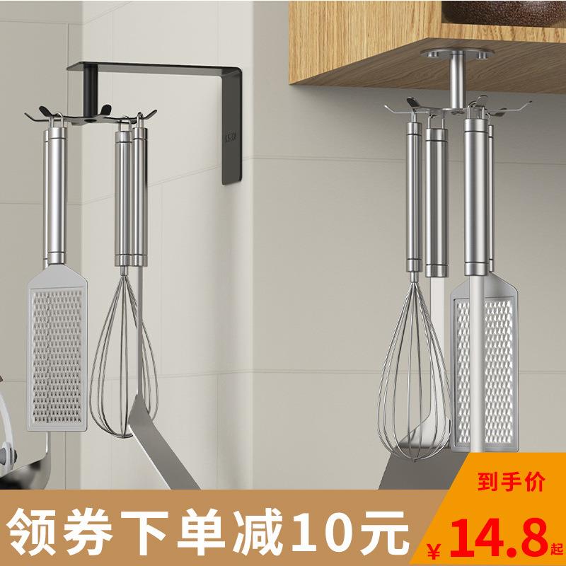 厨房旋转挂钩壁挂免打孔厨具用品收纳304不锈钢无痕吊柜下置物架
