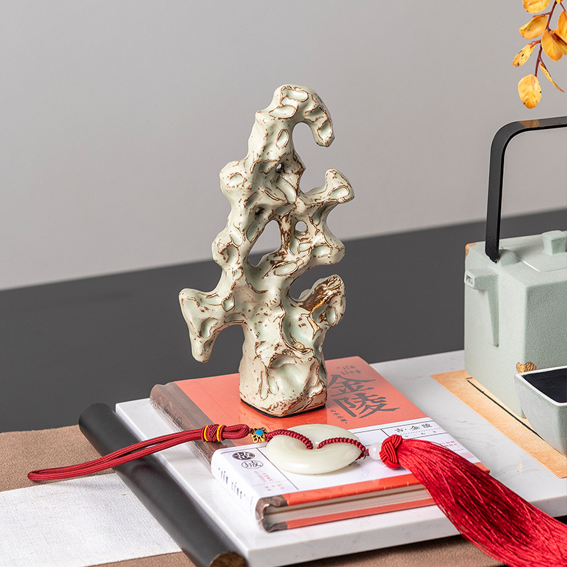 新中式太湖石茶具茶道托盘组合摆件样板间茶室禅意茶桌装饰品摆件