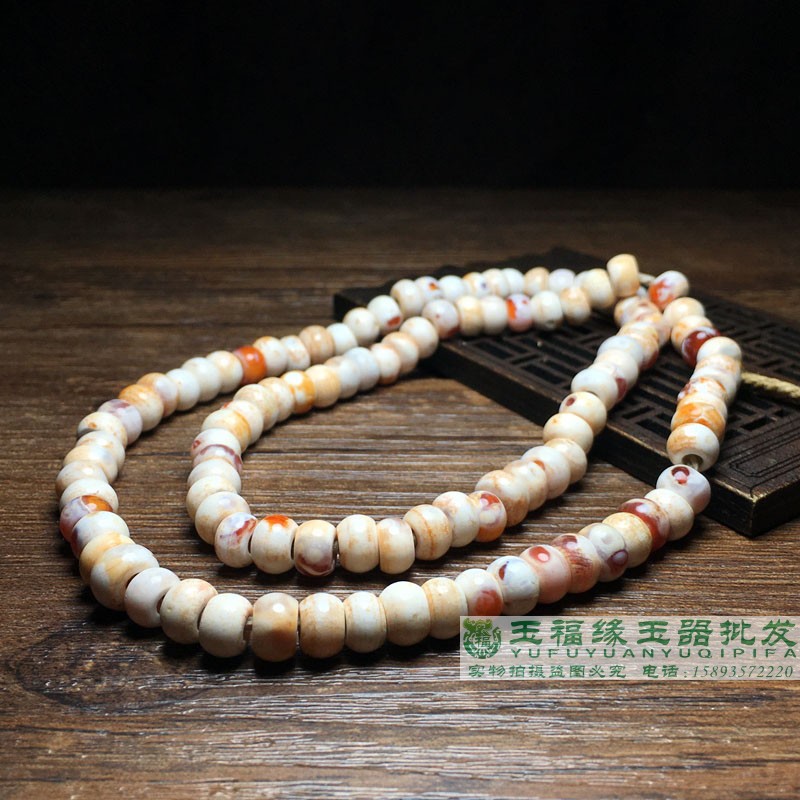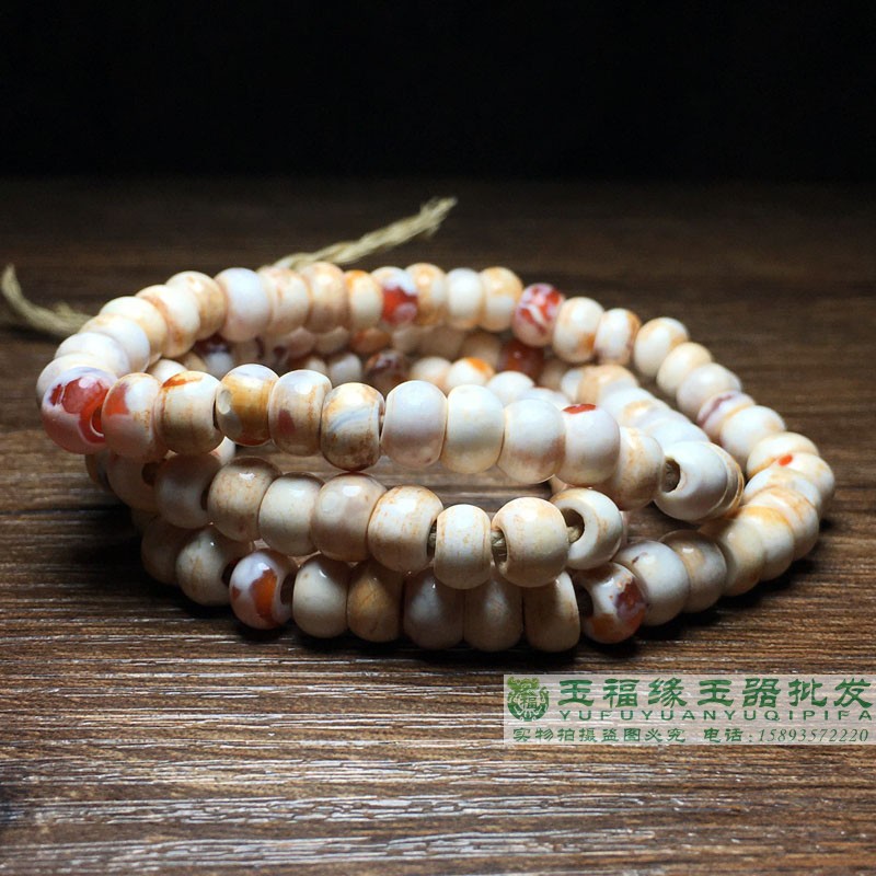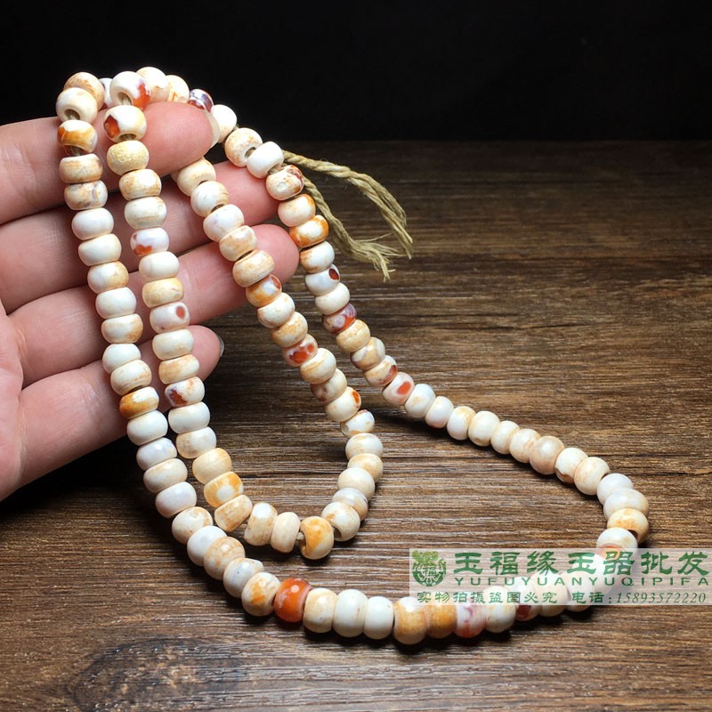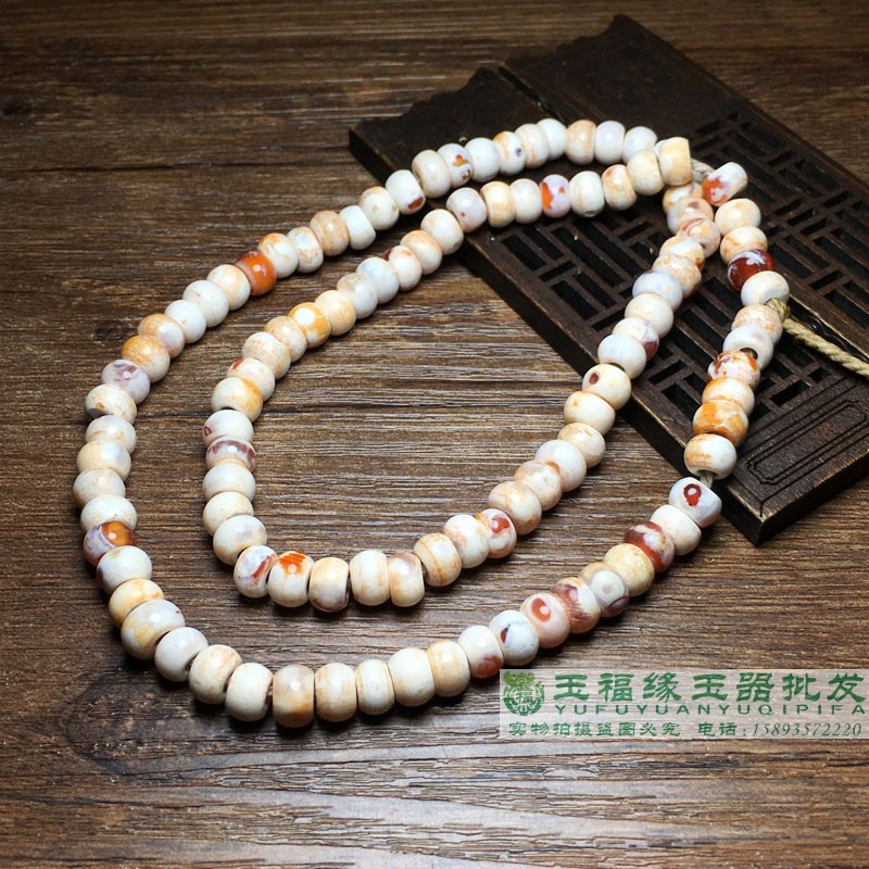 包浆老玛瑙珠子鸡骨白算盘珠108手串链项链配珠喇叭孔车轮鼓珠串
