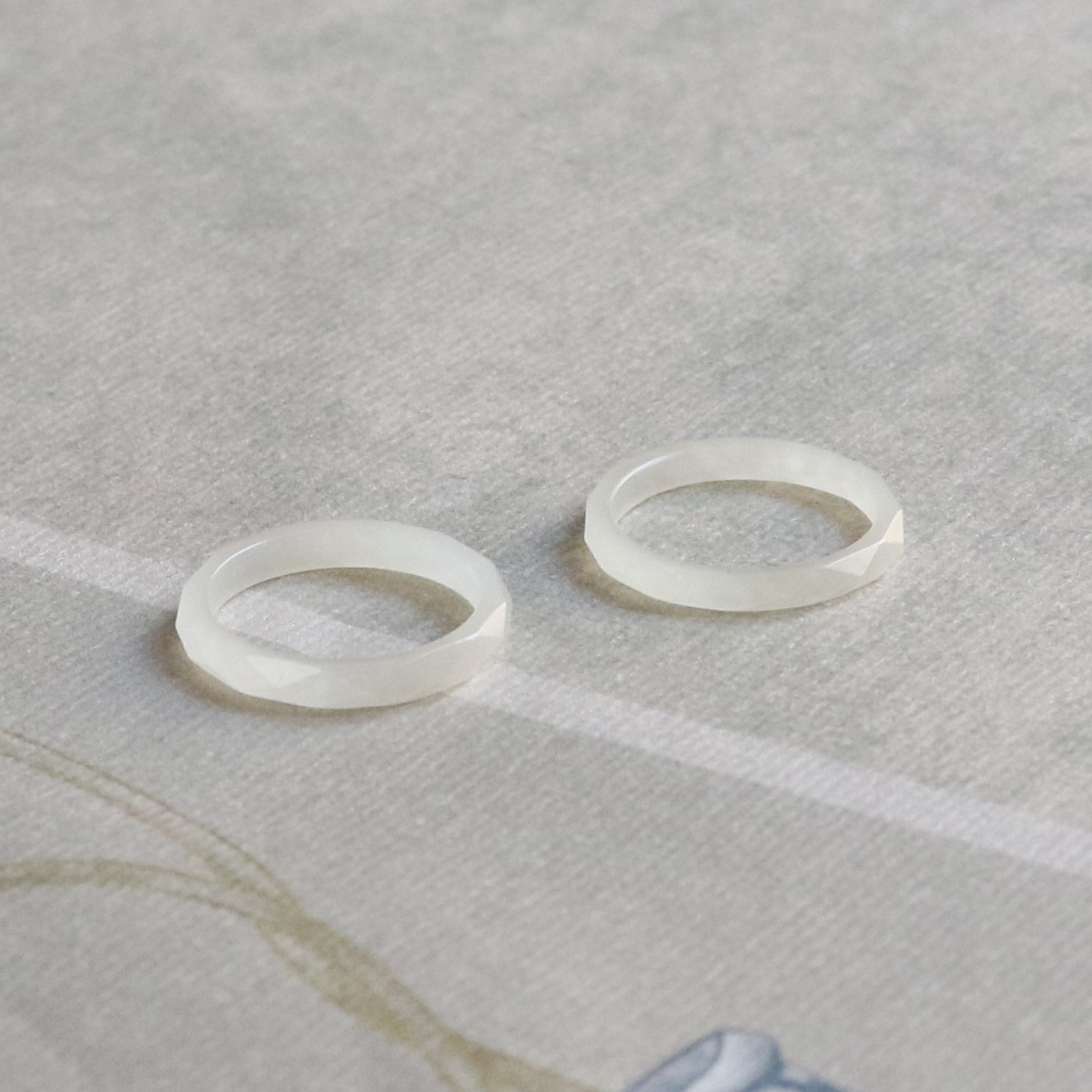 设计款和田玉极细线条戒指女菱形玉石指环17号叠戴款配饰带证书