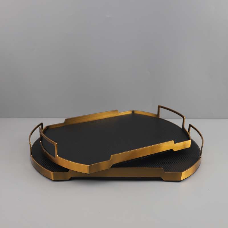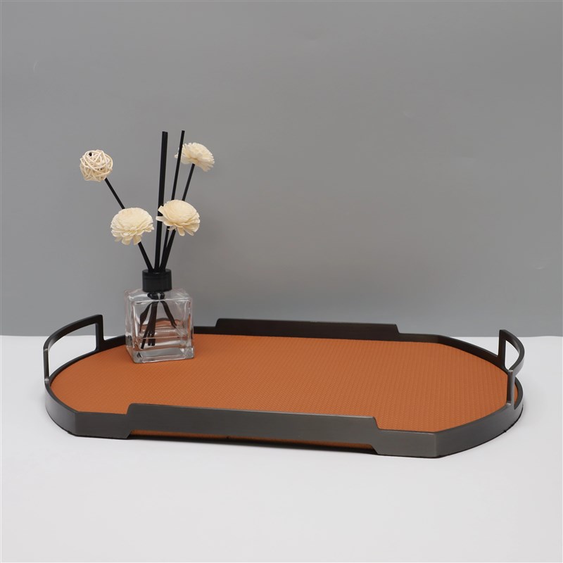 现代简约几何金属皮革托盘摆件客厅卧室玄关酒店样板房家居装饰品