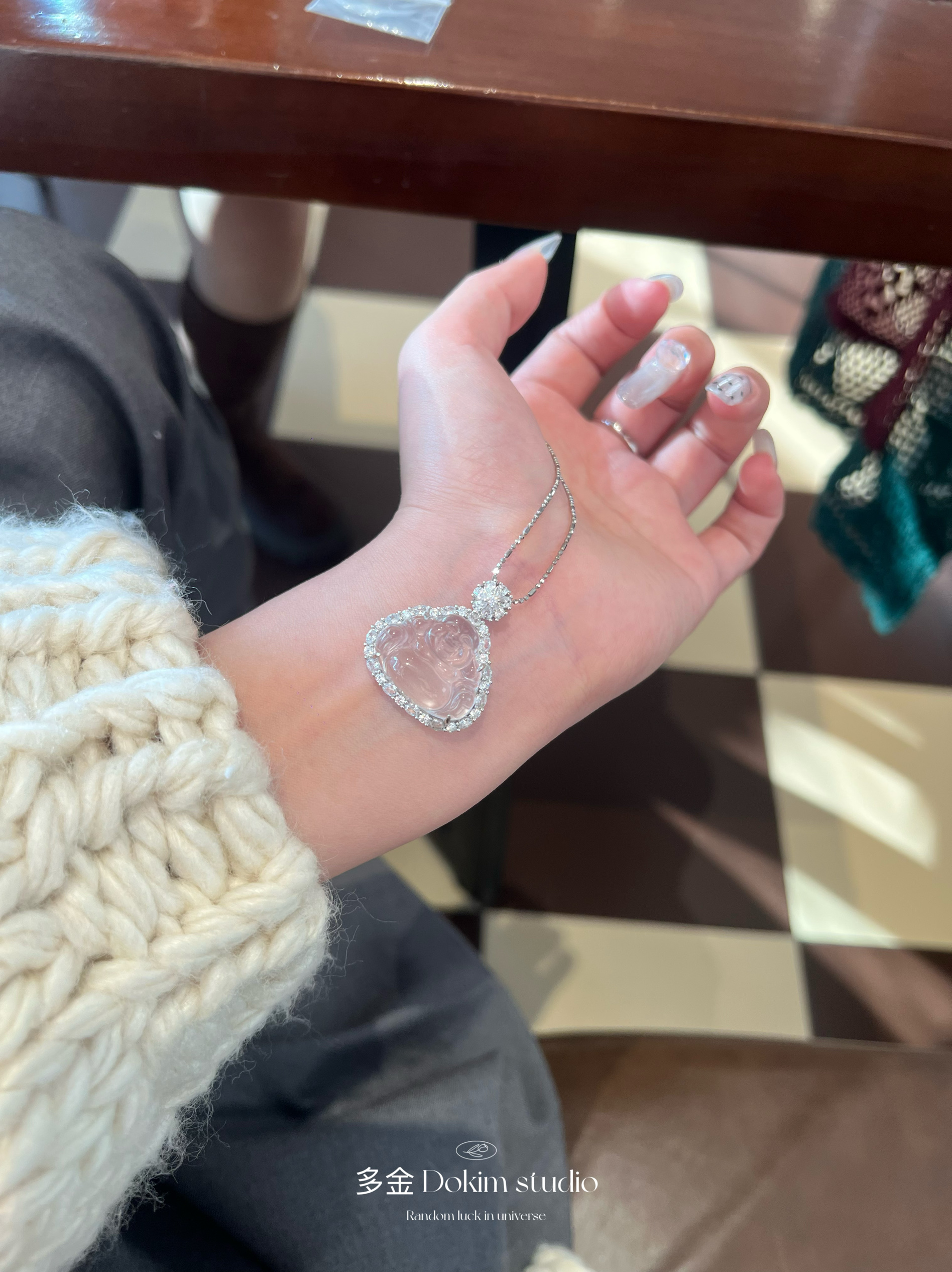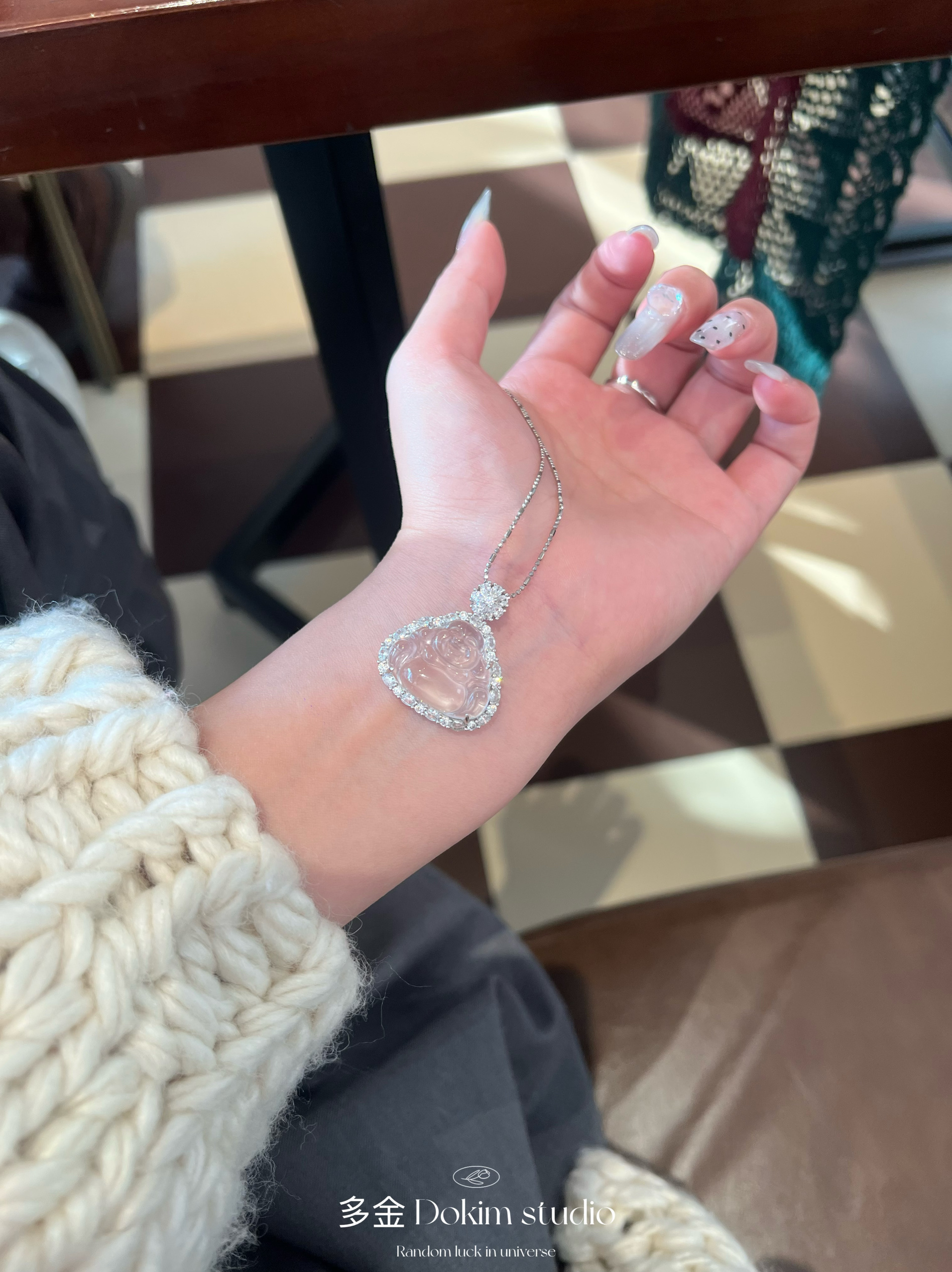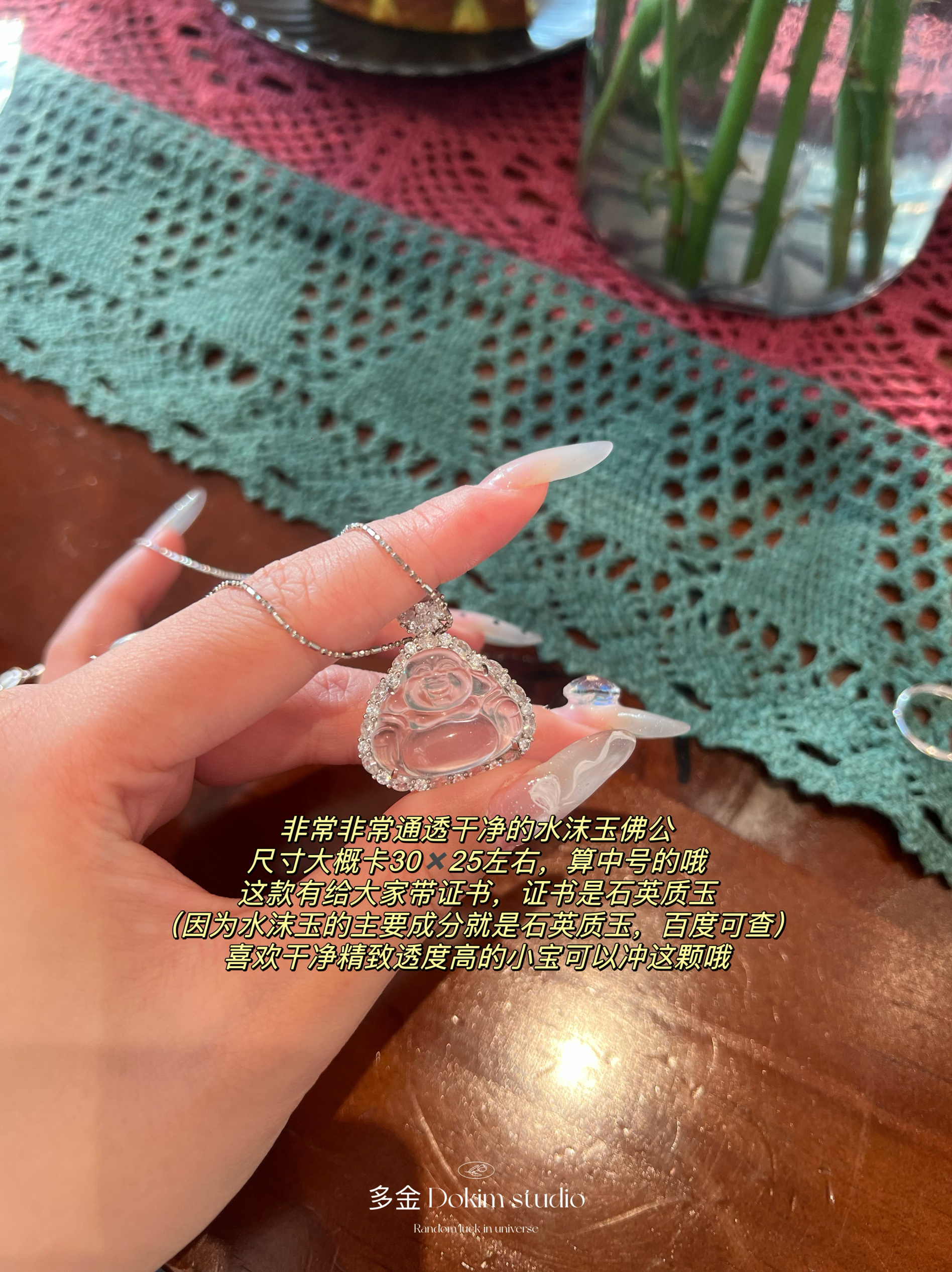 超超超冰透S925纯银天然水沫玉佛公吊坠满钻豪镶气质新中式项链