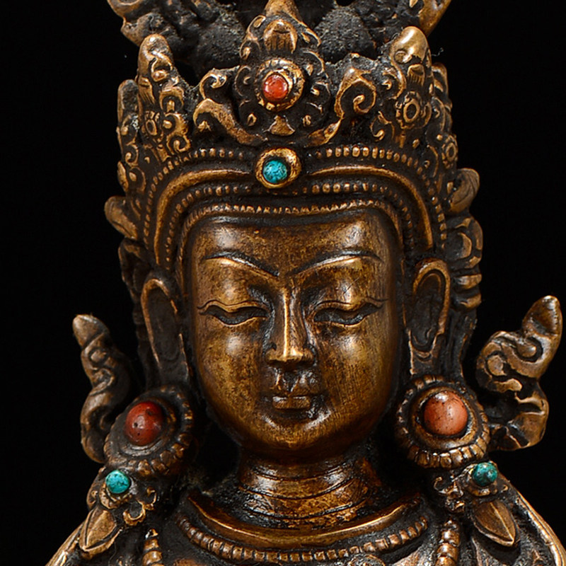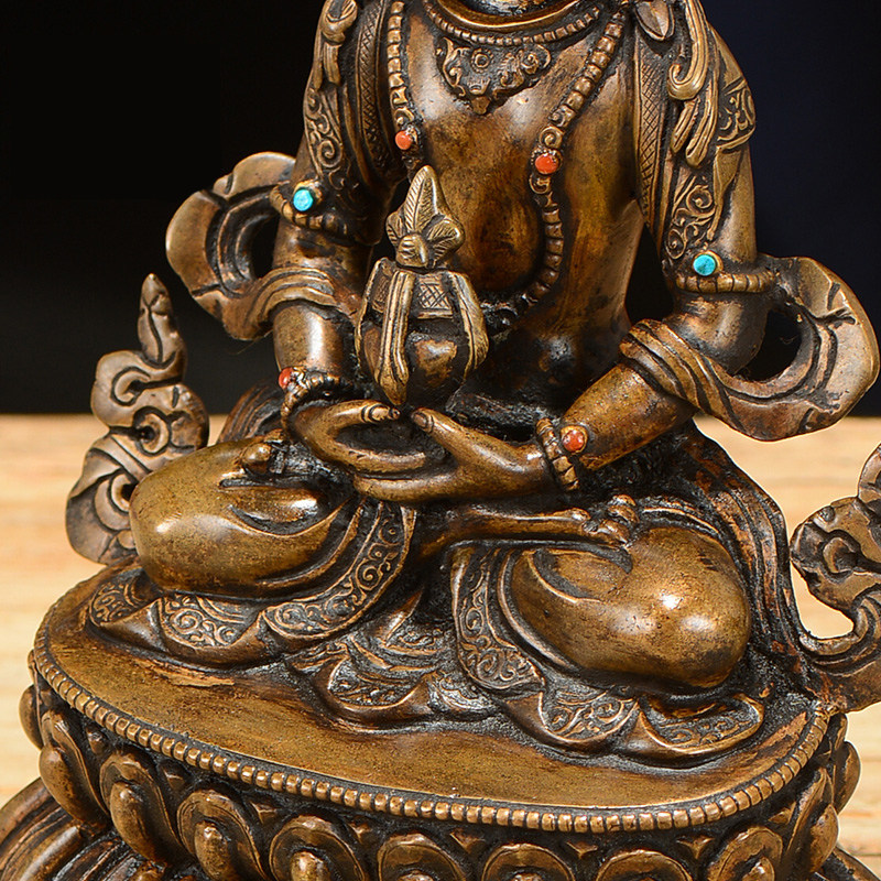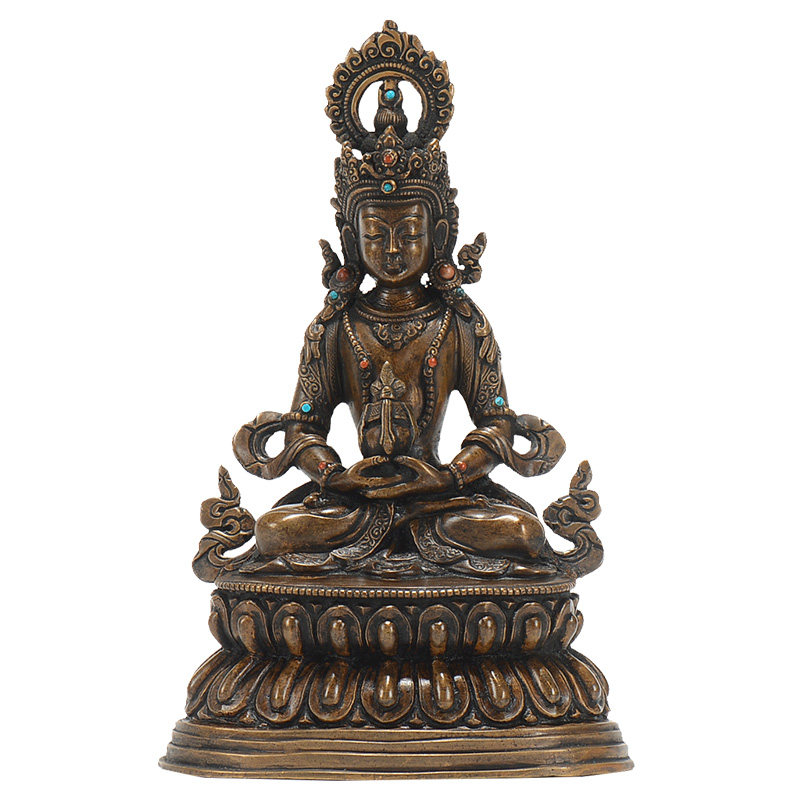 欧斯特常寿佛装饰摆件 新中式家居客厅尼泊尔手工紫铜做旧7寸铜像