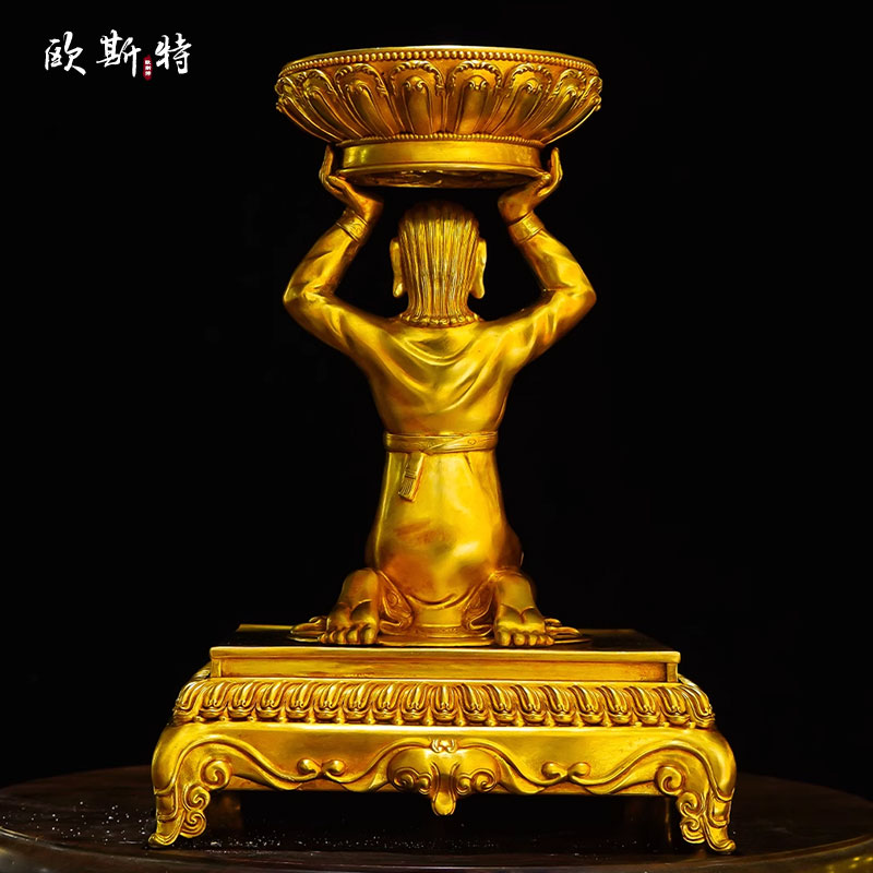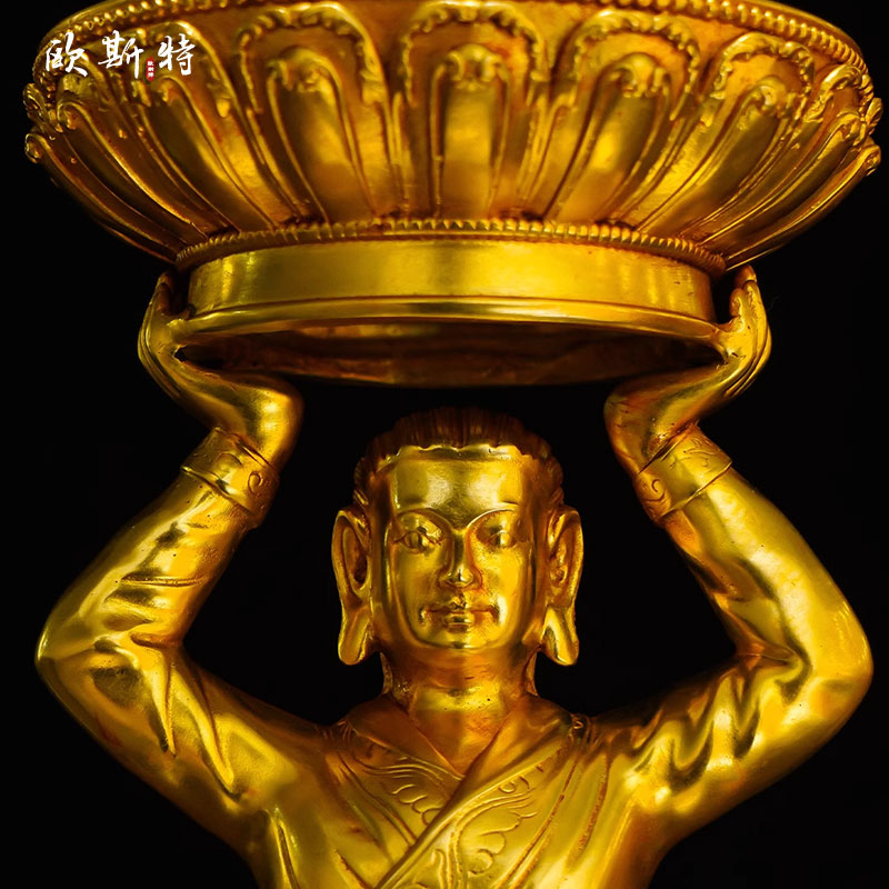 全鎏金人像灯酥油灯座佛前供灯家用铜莲花灯座长明灯灯架蜡烛台
