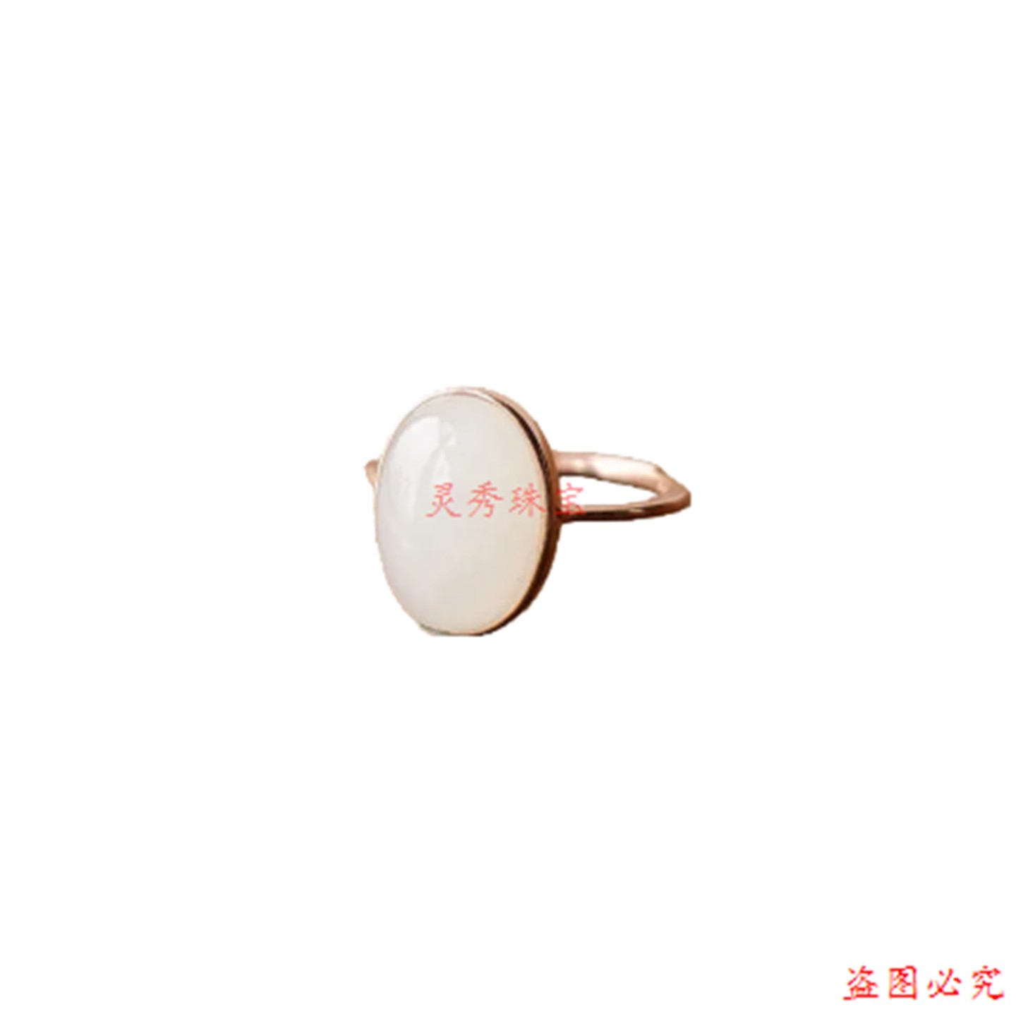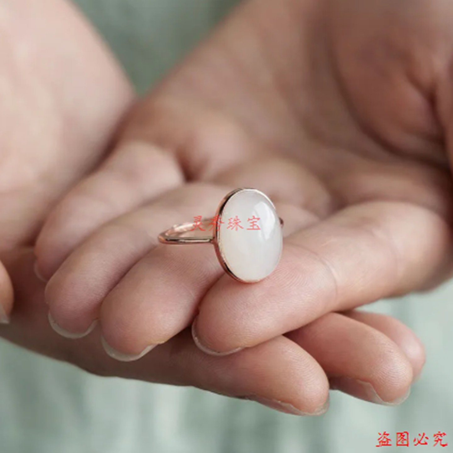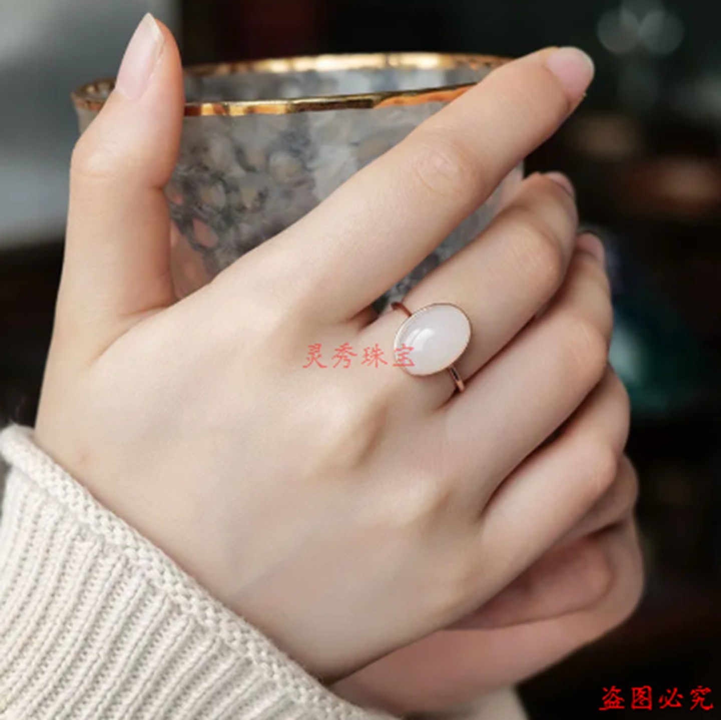 和田玉玉石戒指女蛋面活口食指戒纯银镀金轻奢高级 ·小众设计