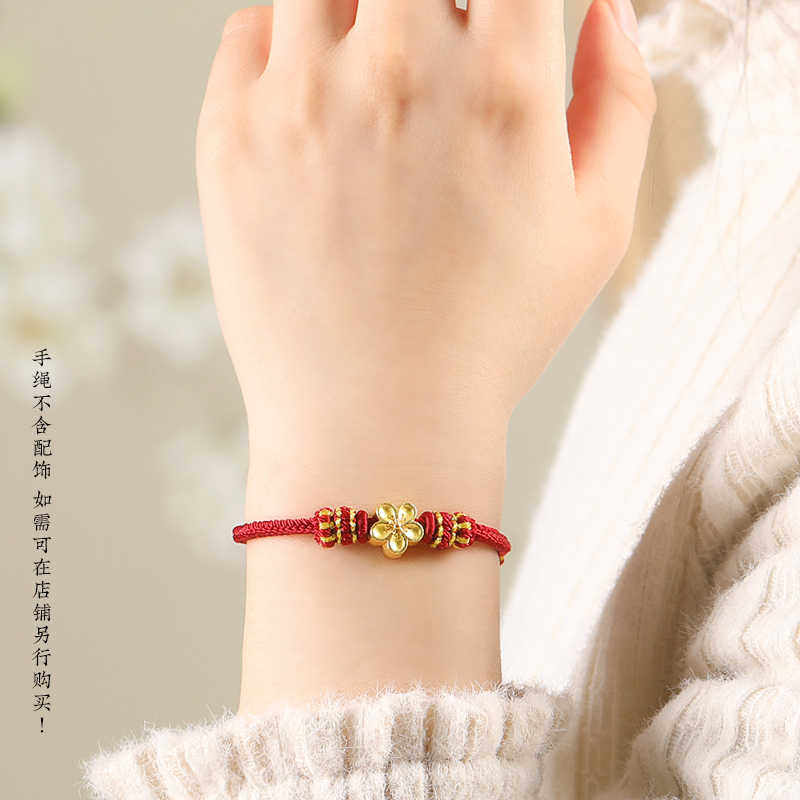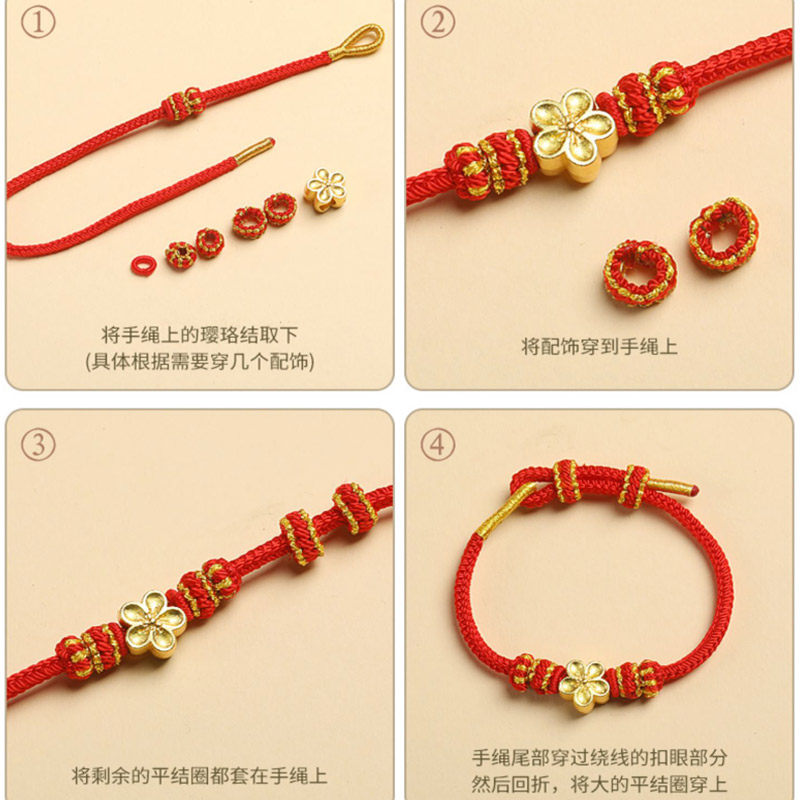 手工编织红绳手绳|DIY半成品自由穿黄金转运珠马年本命年情侣手链