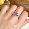 6克拉葡萄紫粉蓝宝色925银戒指满钻宽戒臂小富婆彩宝精工款