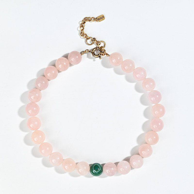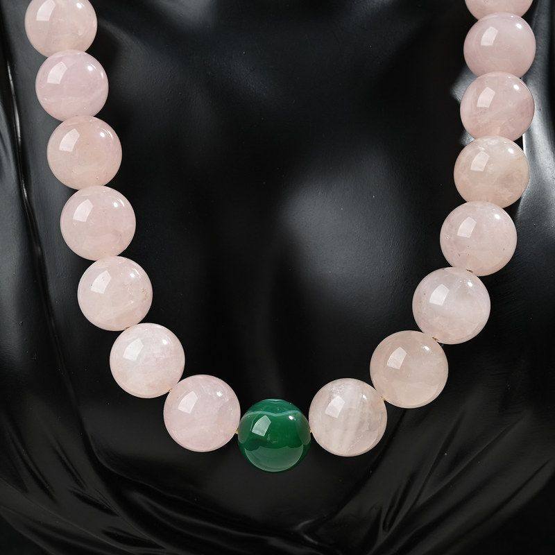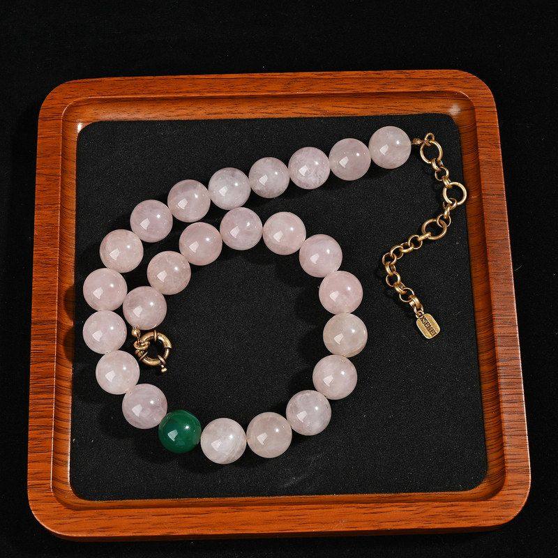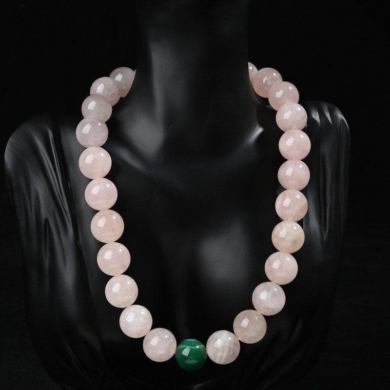 项链百搭毛衣链16mm高级绿色孔雀石项链圆珠粉晶大气串珠天然复古