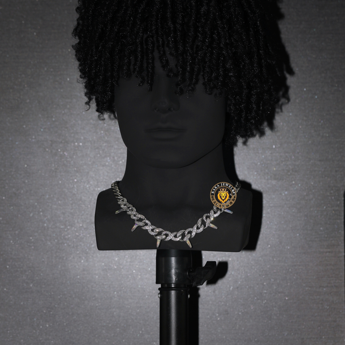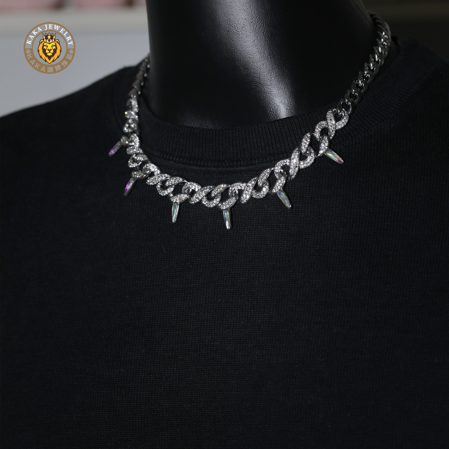 嘻哈钛钢拼接8字荆棘带刺镶钻古巴链男潮流高级感街头朋克锁骨链