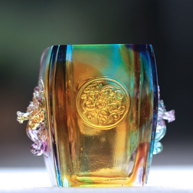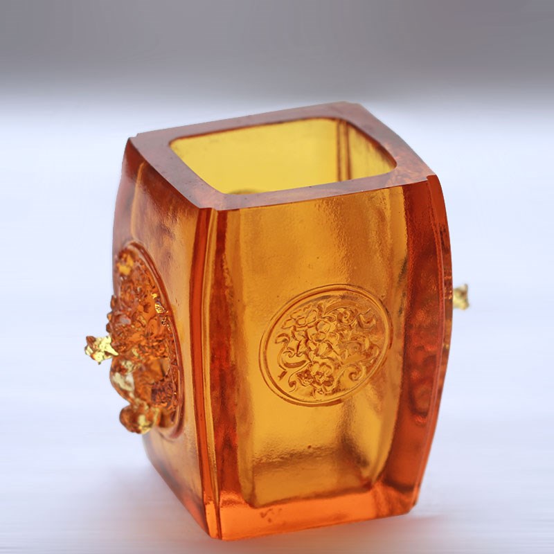 古法琉璃双龙笔筒毛笔筒摆件居家客厅桌面办公S装饰商务定制送礼