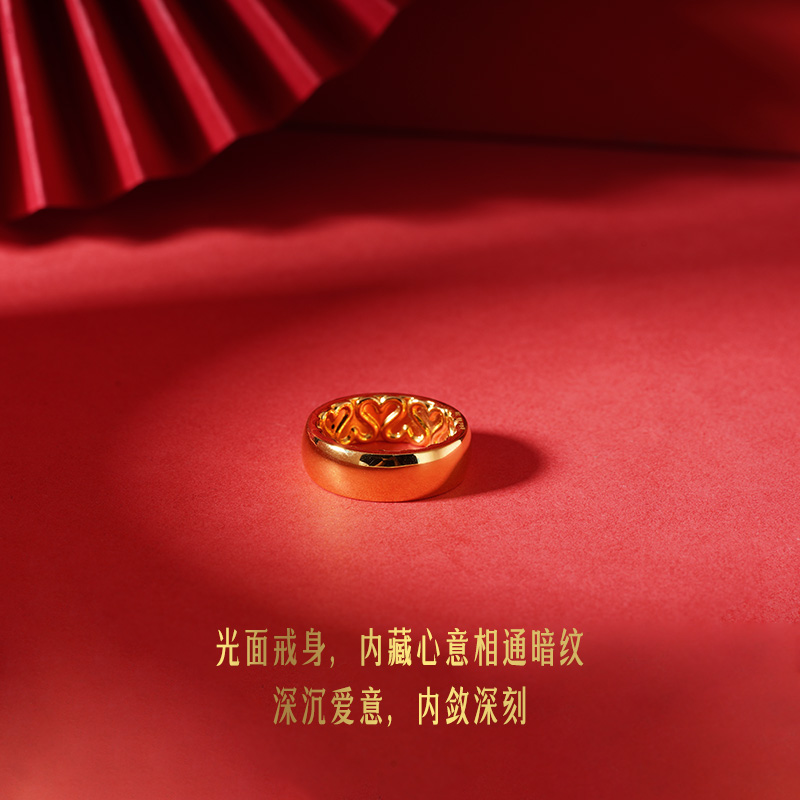 老庙有鹊黄金足金心囍爱心男戒戒指情侣对戒婚戒5D海豚金中性时尚