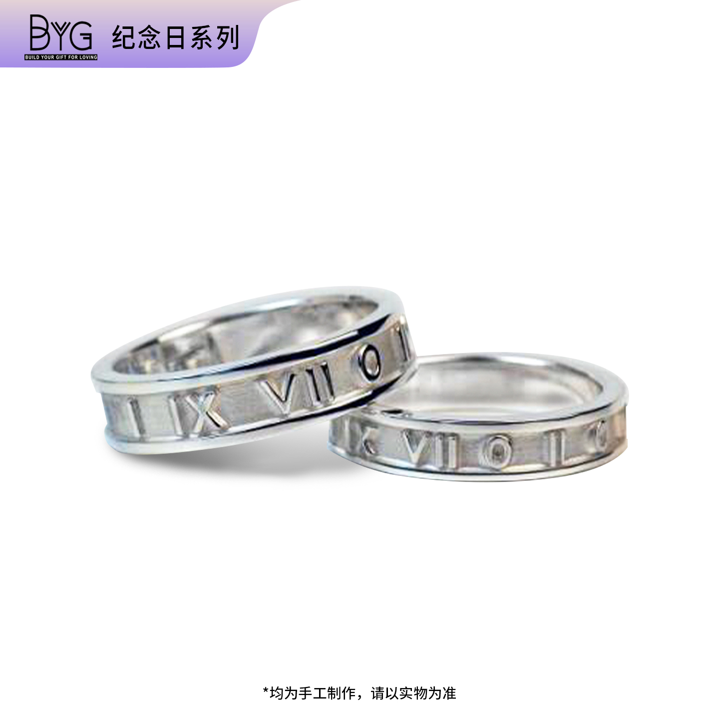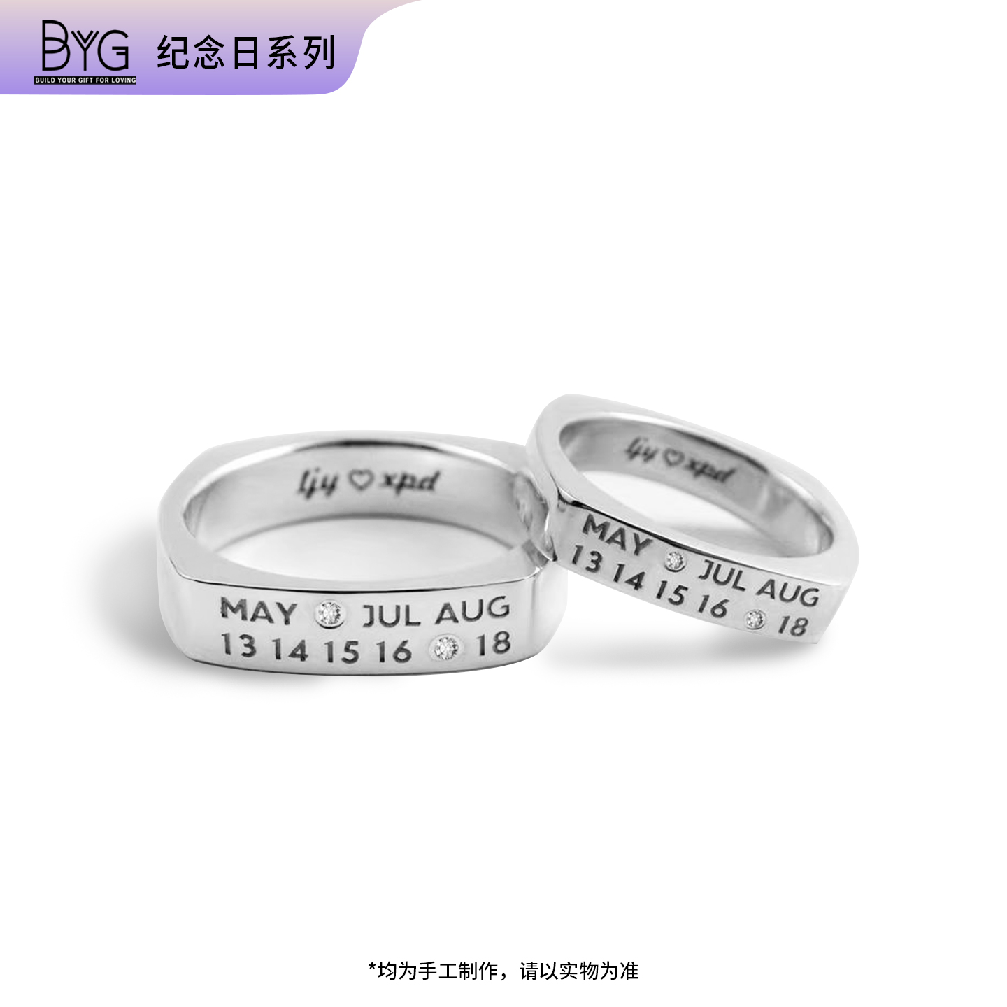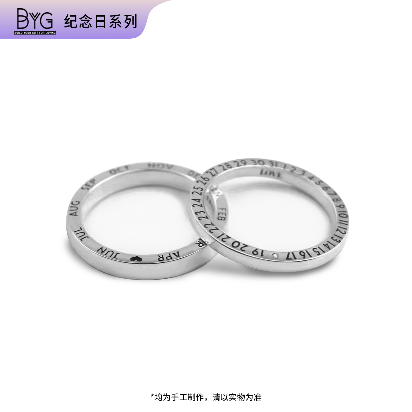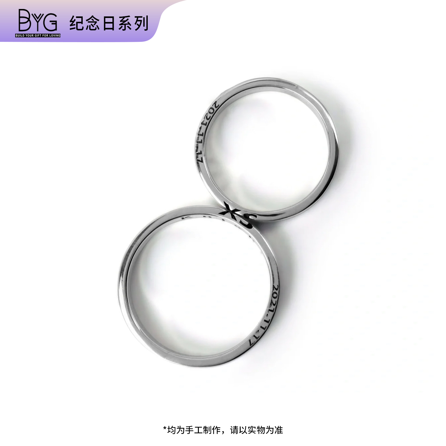 BYG纪念日系列足银戒指手工定制刻字可调整宽度