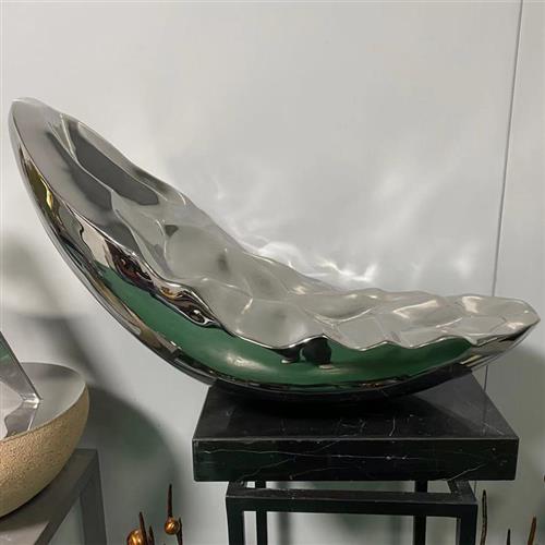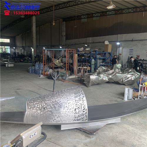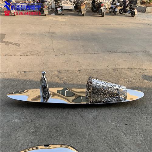不锈钢镜面抽象小船雕塑金属户外水景水池渔人与船纯手工摆件定制