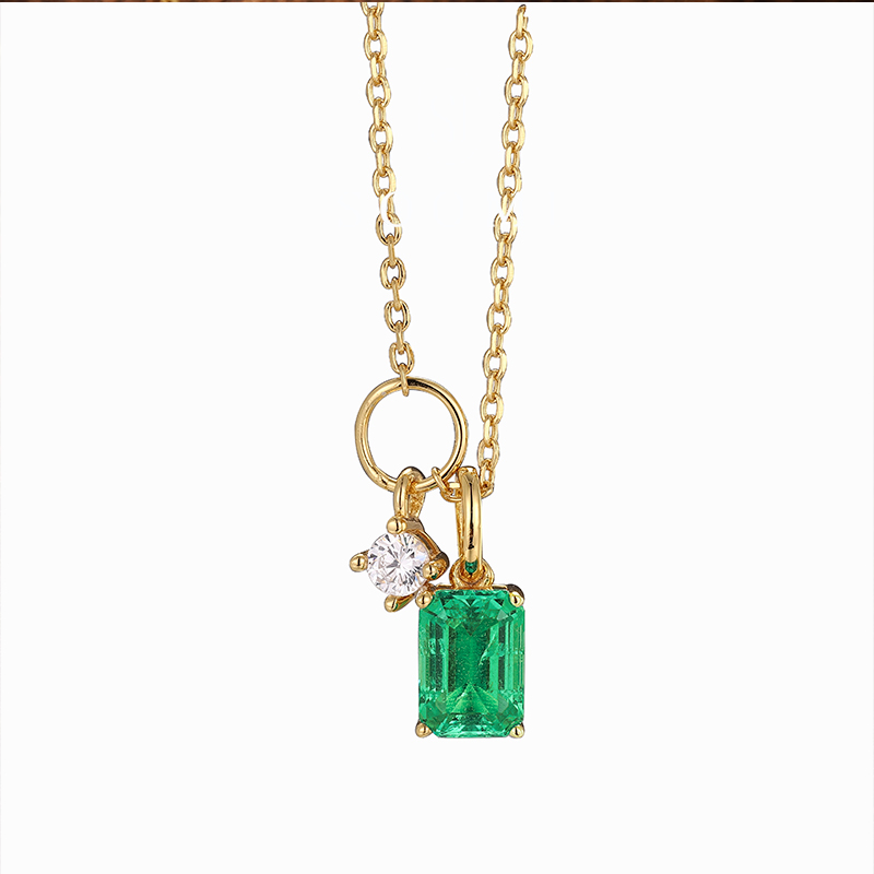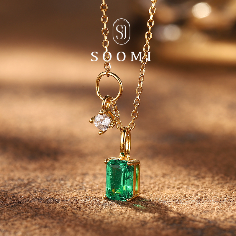 【SOOMI晨露】925纯银实验室培育木佐色祖母绿吊坠复古锁骨链项链