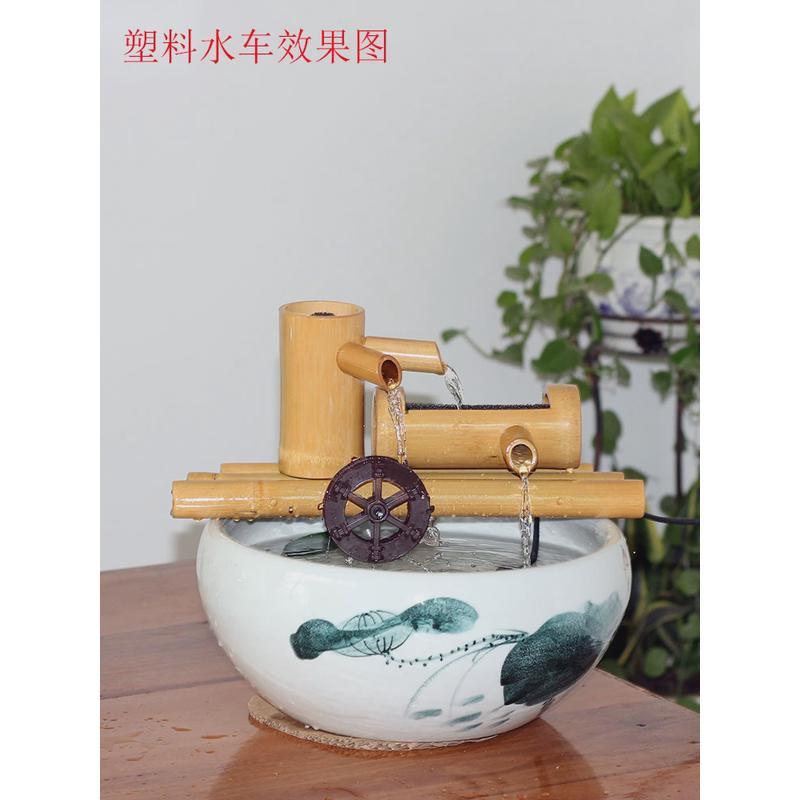 竹子流水造景摆件鱼缸石槽过滤器水轮水车加湿器鱼缸流水增氧