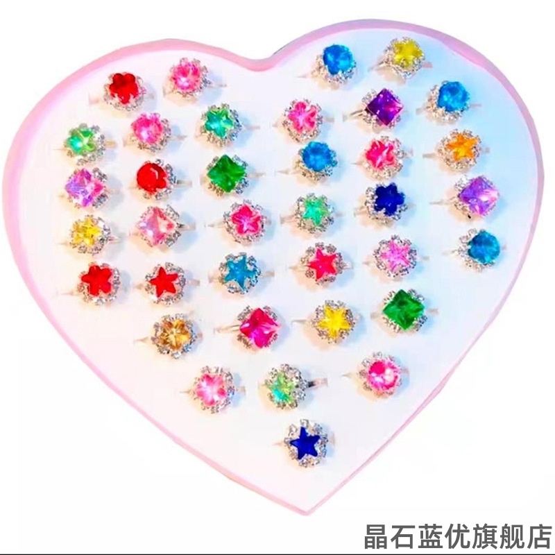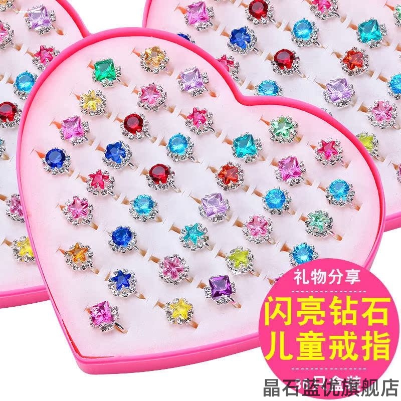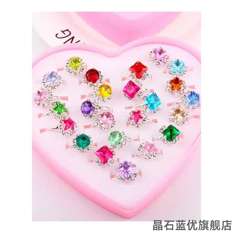 儿童宝石小戒指饰品钻石小孩公主可爱卡通首饰品女童塑料女孩