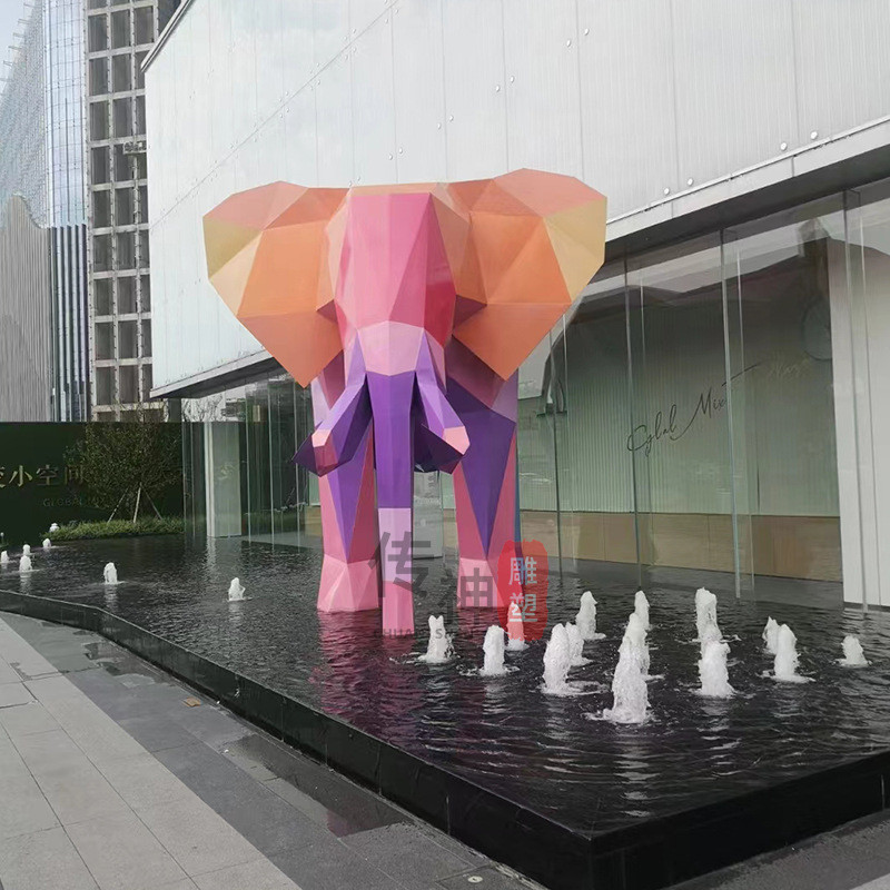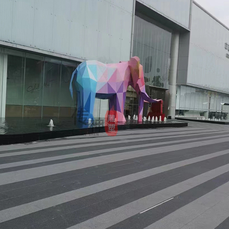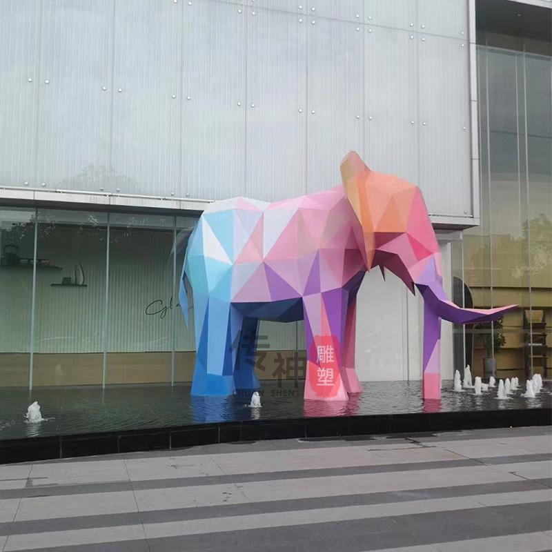 不锈钢切面大象雕塑抽象镜面几何切面大象动物户外景观楼盘模型