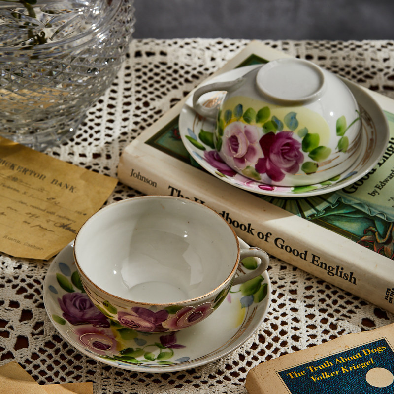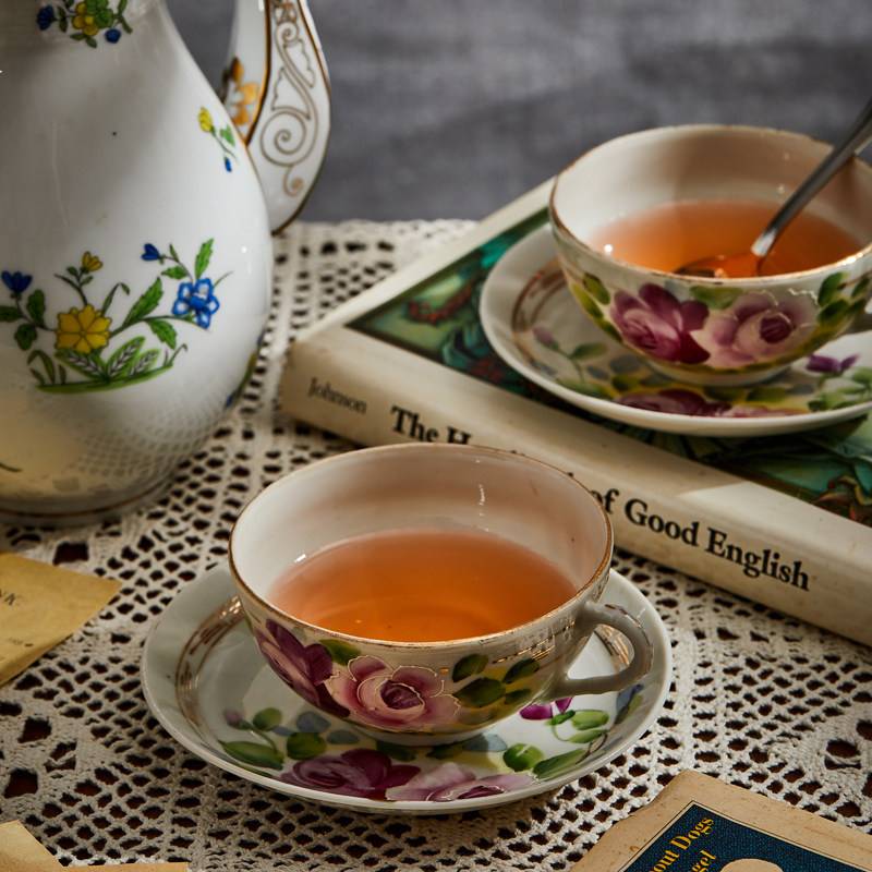 咖啡杯ins田园风复古手绘创意精致茶杯欧式奢华陶瓷家用中古摆件