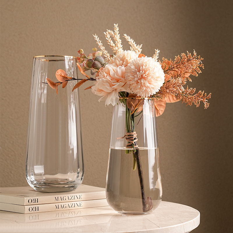 贝汉美现代轻奢水培鲜花玻璃花瓶客厅餐桌透明实用插花摆件装饰品