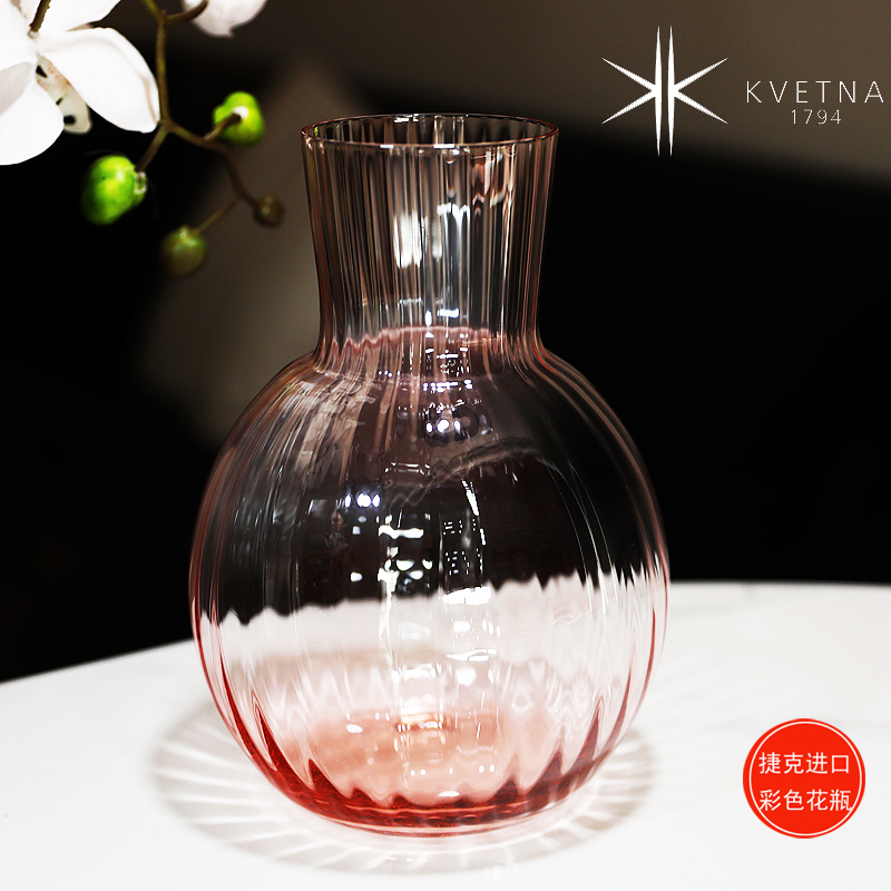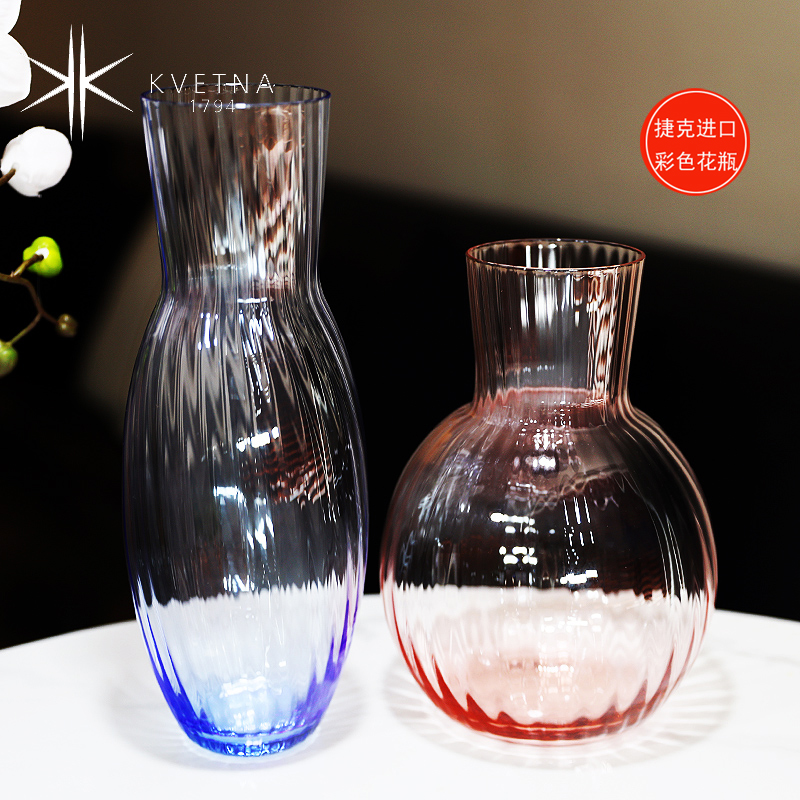 捷克进口水晶玻璃人工吹制彩色醒酒器酒水壶轻奢装饰插花花瓶摆件