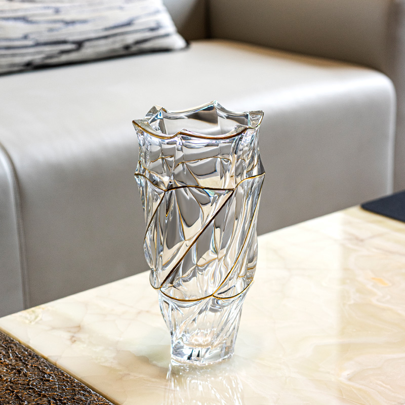 捷克进口BOHEMIA 手工创意描金水晶玻璃插花花瓶轻奢装饰摆件客厅
