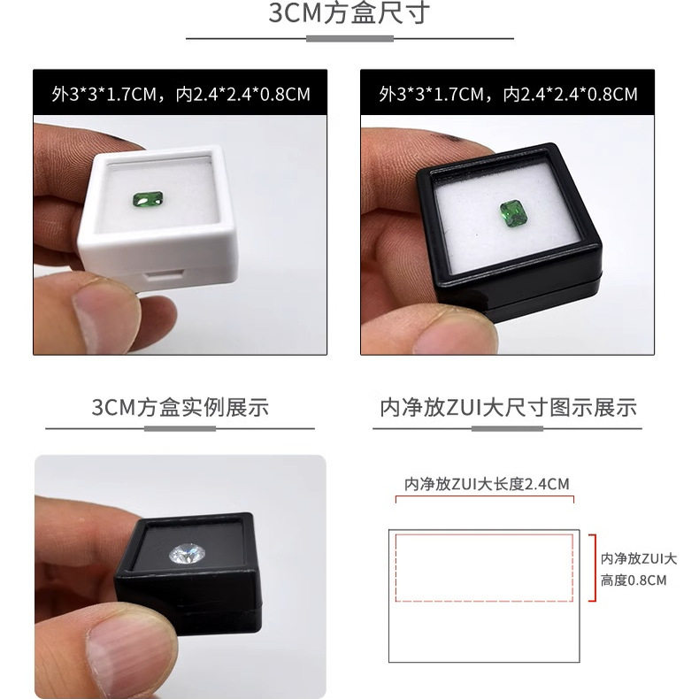 简易型宝石盒子 白色黑色宝石收纳盒 珠宝裸石收纳盒子 钻盒子