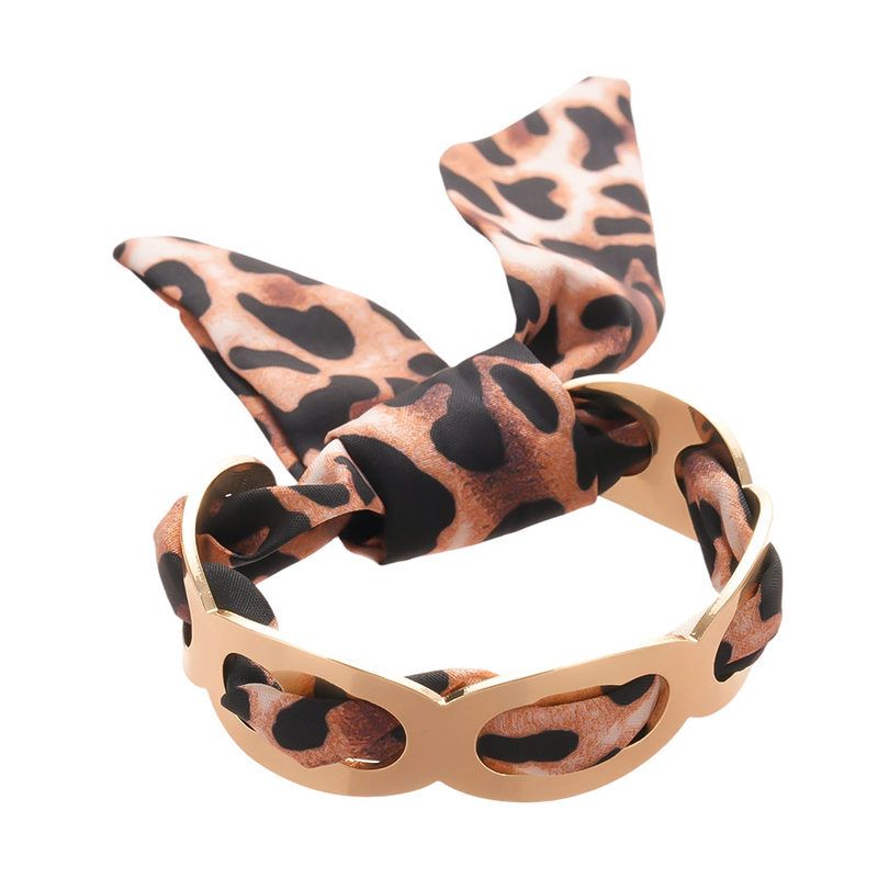 开口女手饰欧美轻奢缠绕高级感圆形布艺跨境手镯镂空金属手环夸张