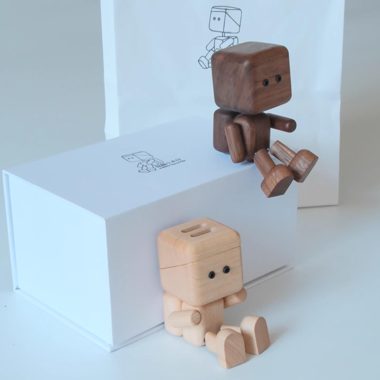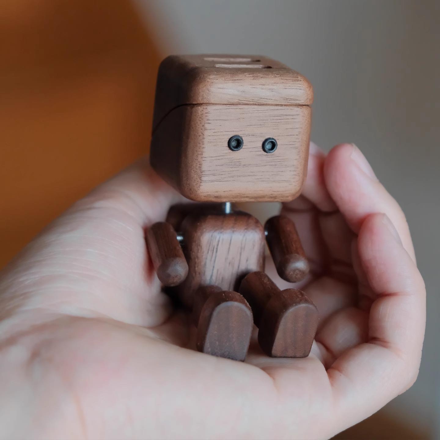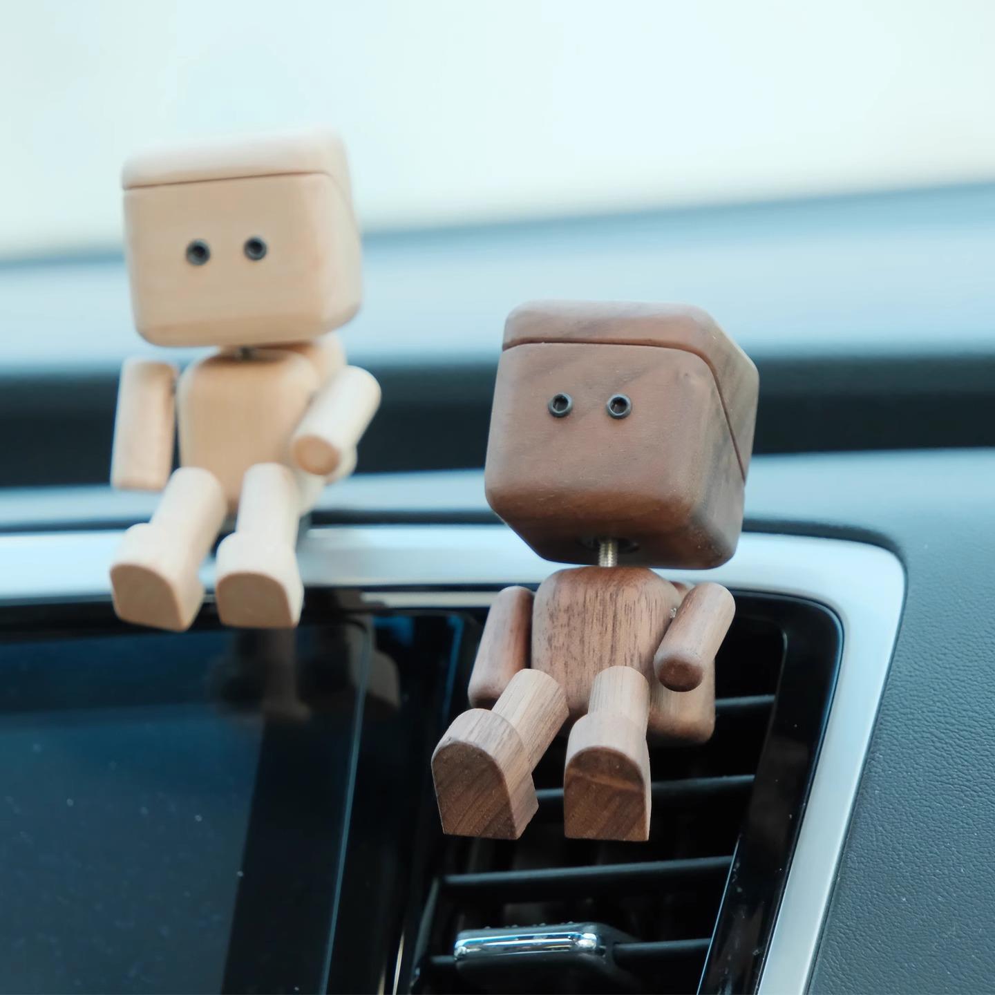 可爱实木甩腿机器人汽车吹风口车载香薰摆件木质桌面摆件柜子饰品