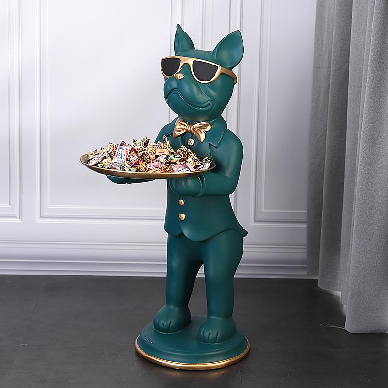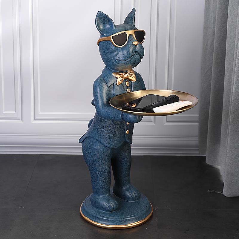 网红法斗犬摆件客厅大型落地托盘电视柜沙发旁边轻奢家居软装饰品