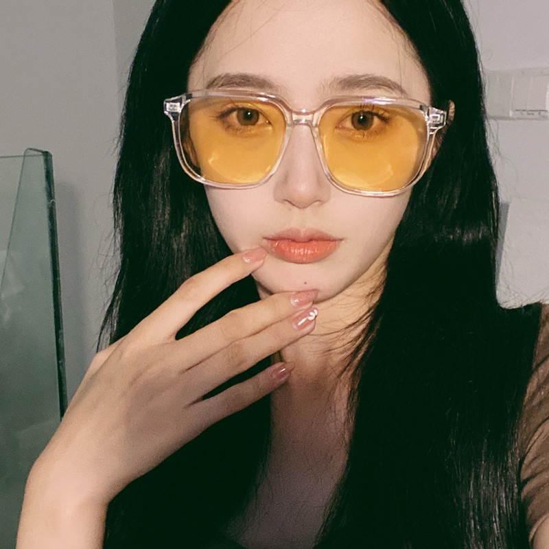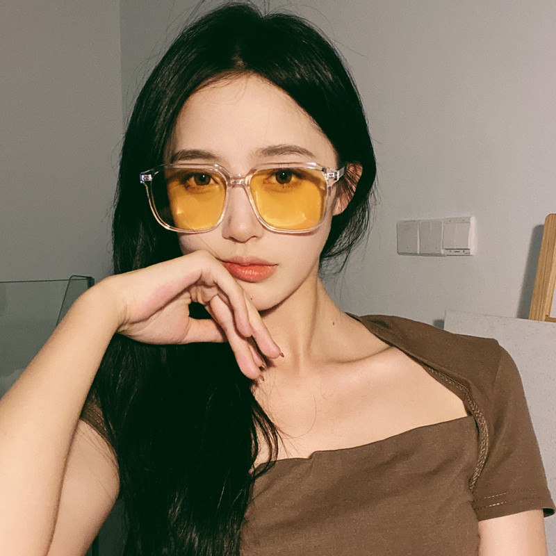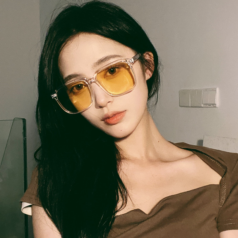 2025新款复古透明黄色方形韩版墨镜女网红圆脸显瘦街拍夜视太阳镜