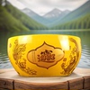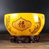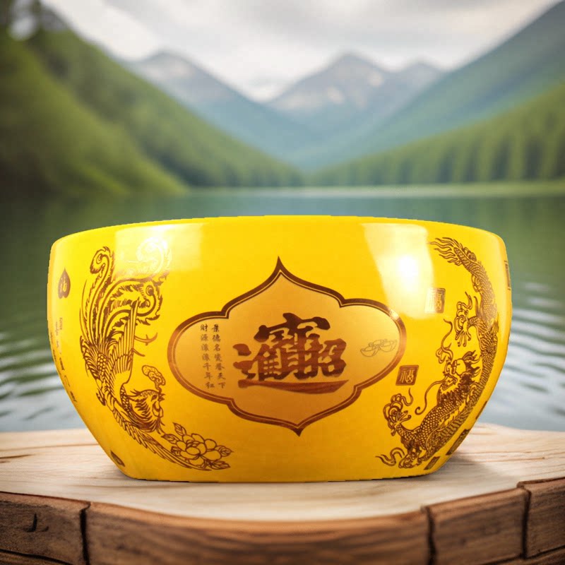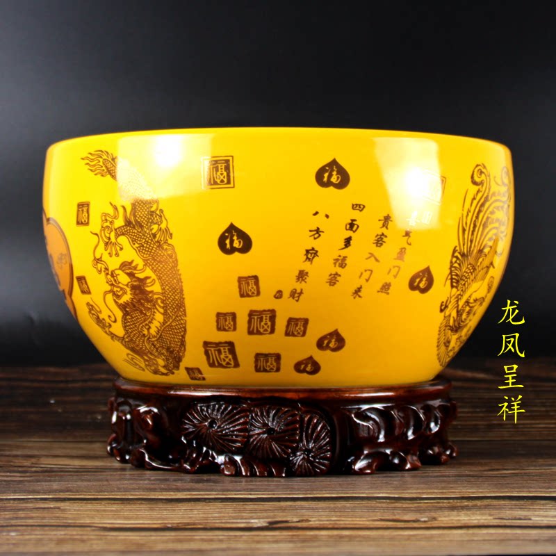 带高档根雕底座景德镇黄色陶瓷聚宝盆花瓶招财聚财客厅工艺品摆件