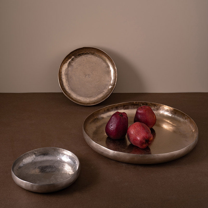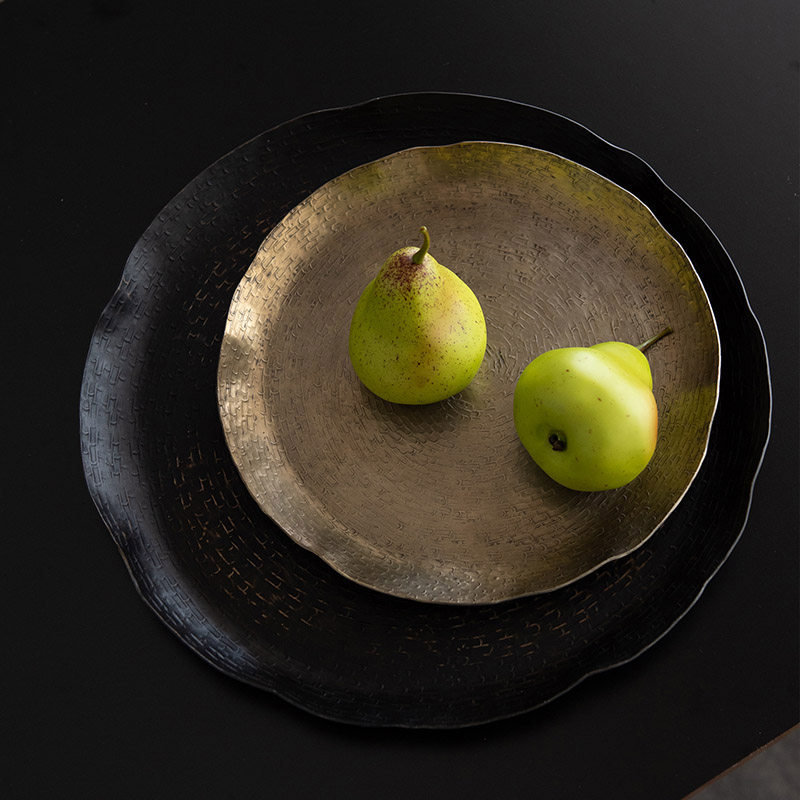现代复古做旧中式进口铝制金属果盘摆件样板间民宿酒店宅寂风装饰