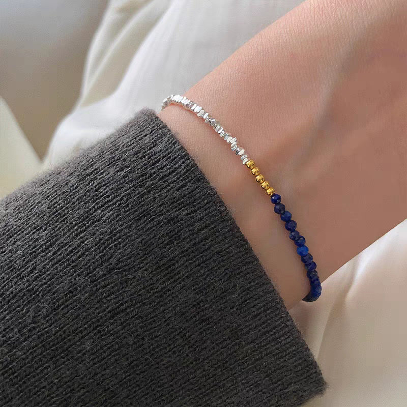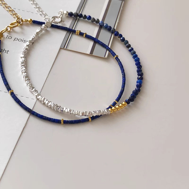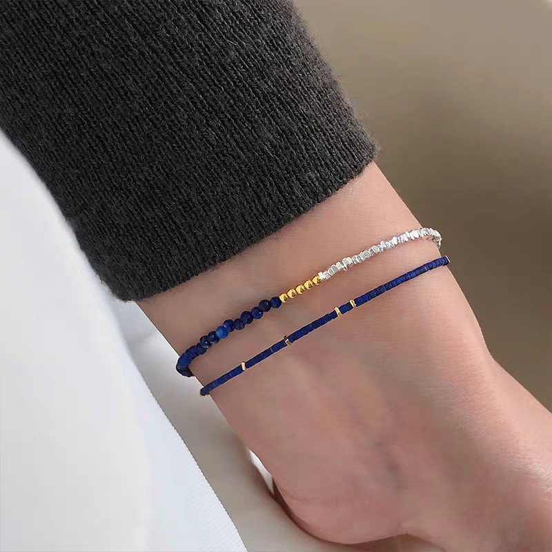 法国Chrry Koop蓝色串珠撞色碎银手链女极细时尚小众百搭高级感
